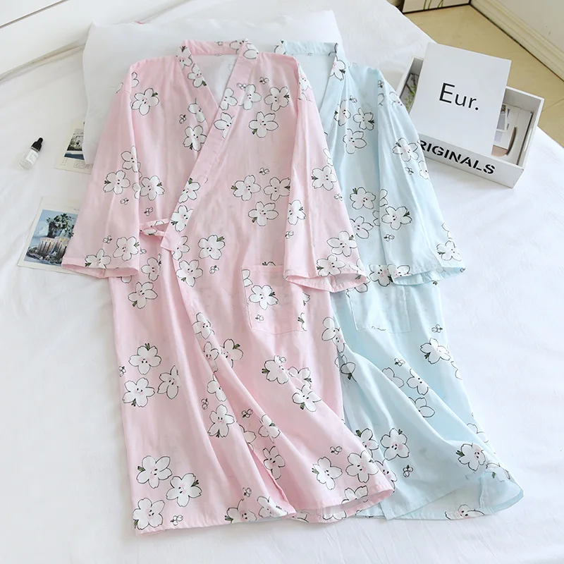 2022 летний халат-кимоно, женские топы для сна, хлопковая марля, же...
