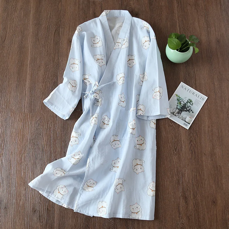 Мужские и женские удобные газовые хлопковые халаты милое кимоно с п...