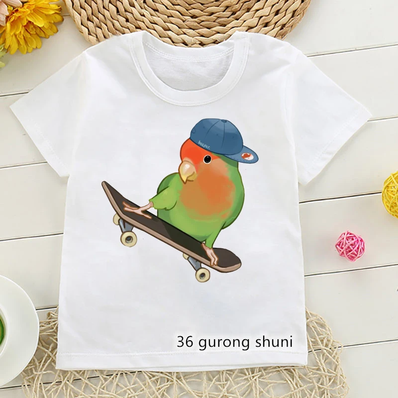 Футболка для мальчиков и девочек, Забавная детская футболка с рисунком птицы, сердца, скутера, повседневная одежда для мальчиков и девочек, футболка для малышей