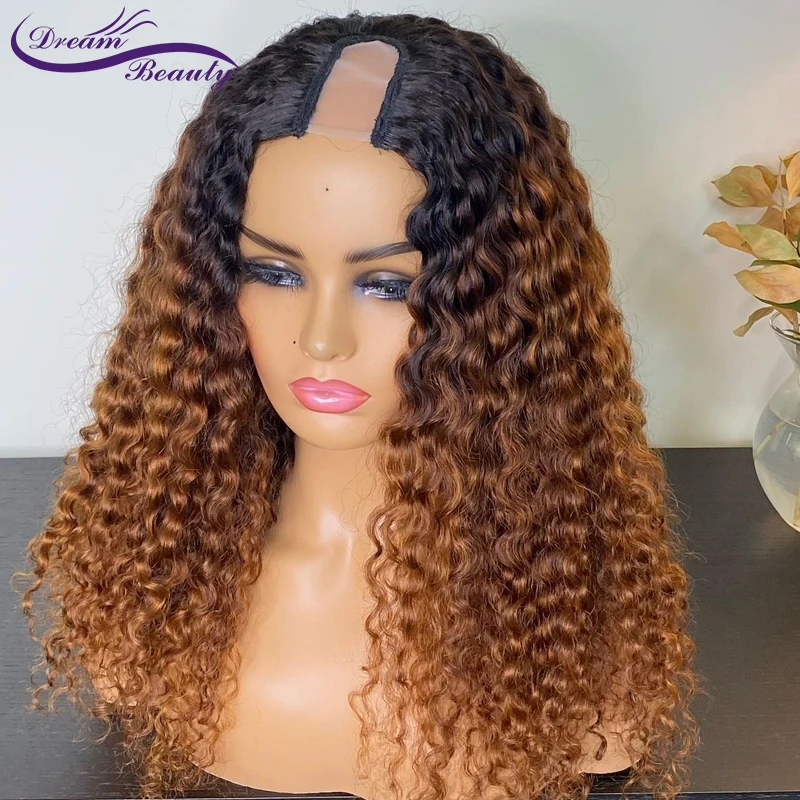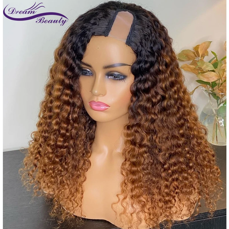 Dream Красота Curl U части парики для Для женщин перуанские накладные волосы с эффектом деграде (переход от темного к светлому), парики из натуральных волос на кружевной основе 150% плотность средней U Форма парики человеческих волос бесклеевой парик