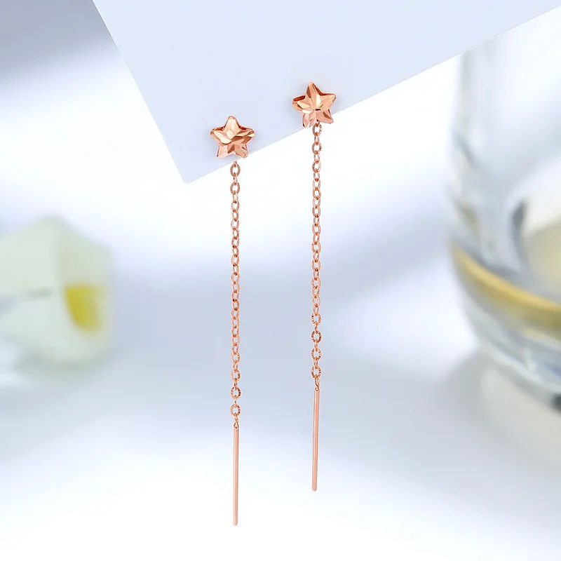 Серьги-подвески женские из титановой стали, розовое золото, с банто...