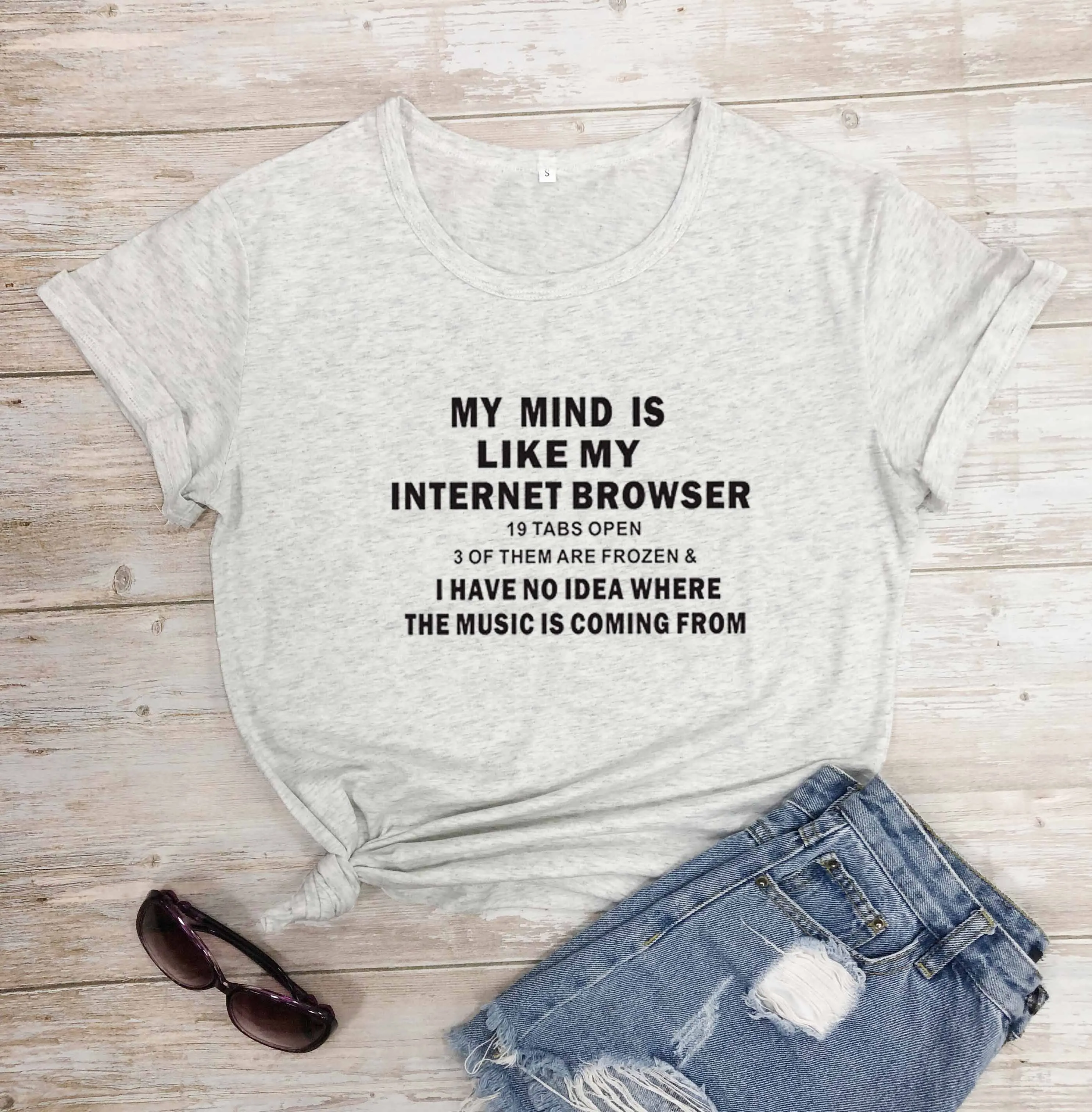 Женская модная хлопковая футболка с короткими рукавами и принтом My Mind is Like Интернет-браузер, забавная футболка с надписью, хипстерские топы, R206