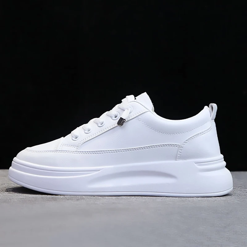 Кроссовки женские из искусственной кожи, белые, на платформе, для увеличения роста