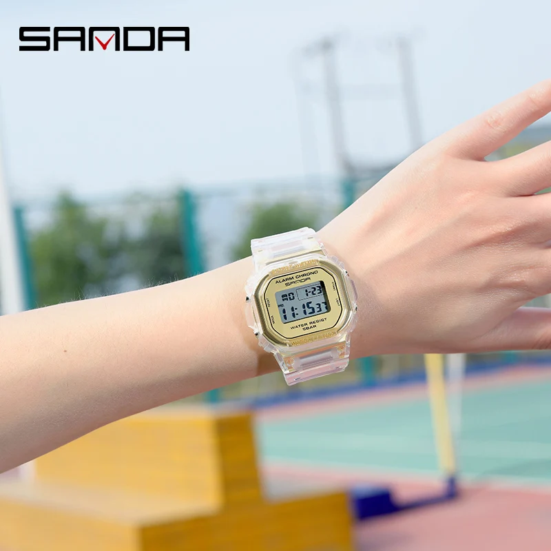 SANDA, модные спортивные часы, женские, прозрачный ремешок, светоди...