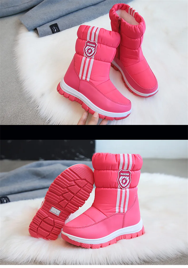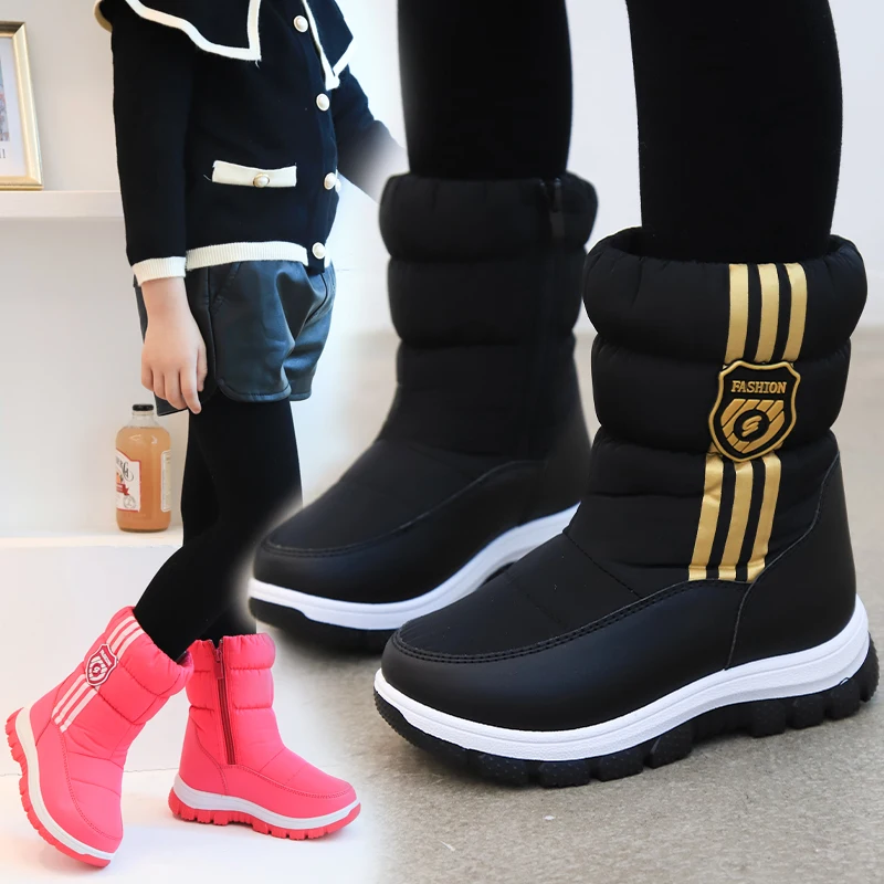 Зимние ботинки на платформе для девочек, детские Резиновые Нескользящие зимние ботинки для девочек, водонепроницаемая теплая зимняя обувь для больших детей