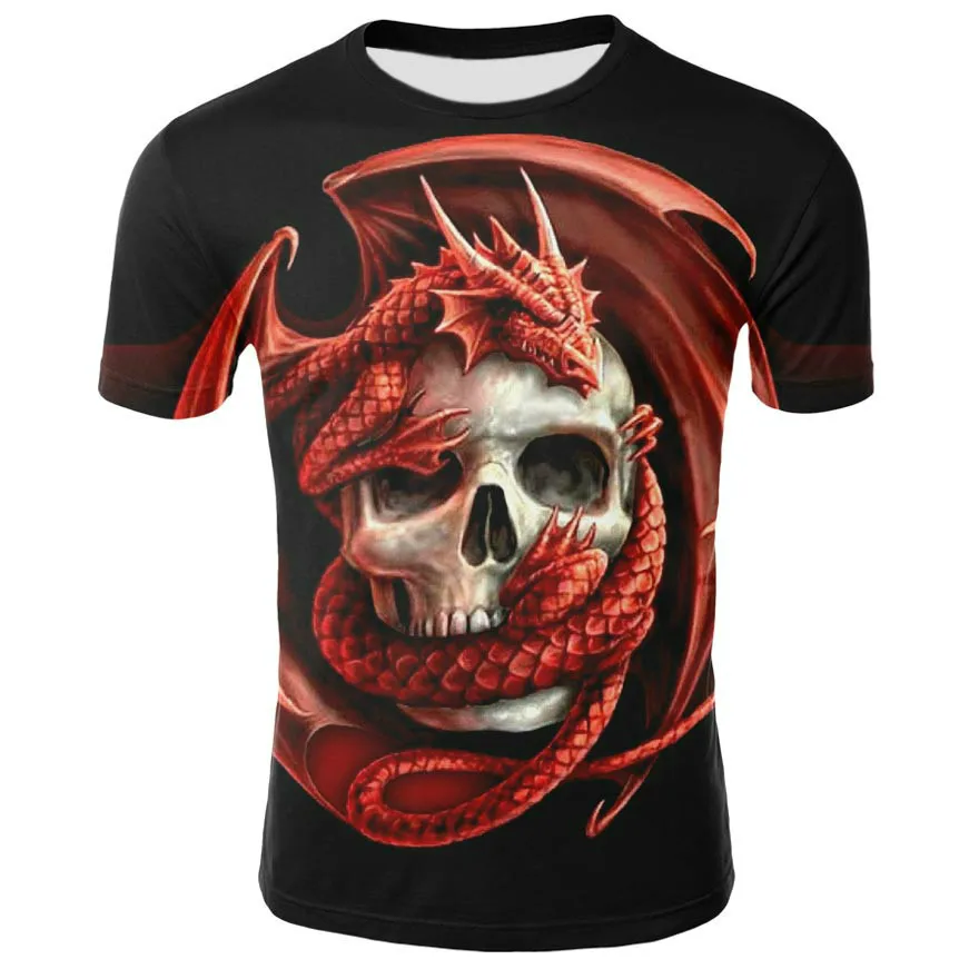 Летняя модная новая футболка, Мужская Красивая куртка с 3D-принтом черепа, футболка с короткими рукавами и круглым вырезом,