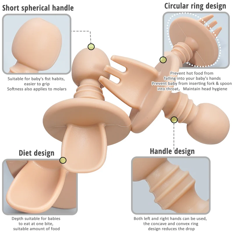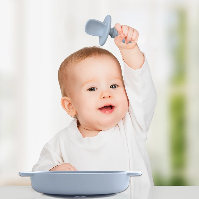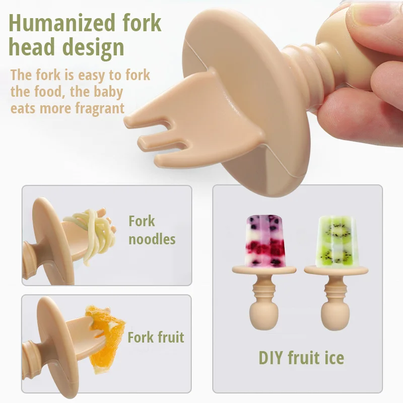100% пищевой Класс силиконовый мини-вилка ложка для детской посуды ...