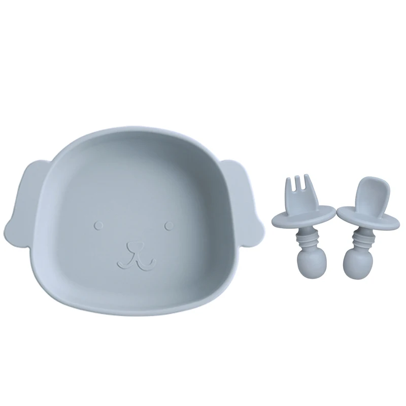 100% безопасная для пищевых продуктов силиконовая посуда для детей, набор посуды, тарелки для кормления, поднос для еды, тренировочная мини-вилка, ложка