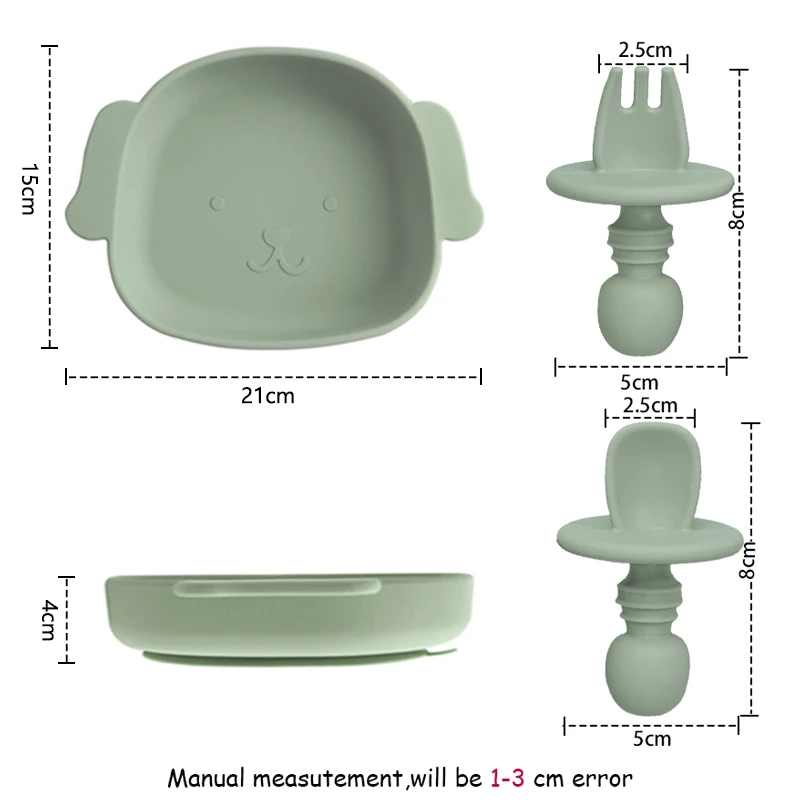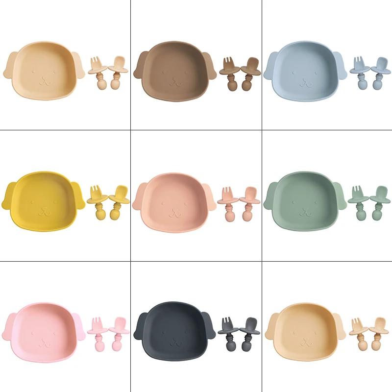 100% пищевой безопасный утвердить силиконовые столовые приборы для детей набор посуды, посуда для кормления c изображением животных, из пластин поднос еды обучение мини-вилка ложка