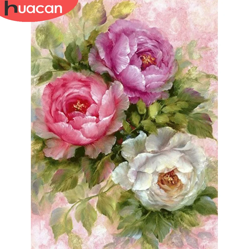 Алмазная живопись HUACAN, домашний декор, квадратнаякруглая мозаика, вышивка крестиком с цветами, настенные наклейки