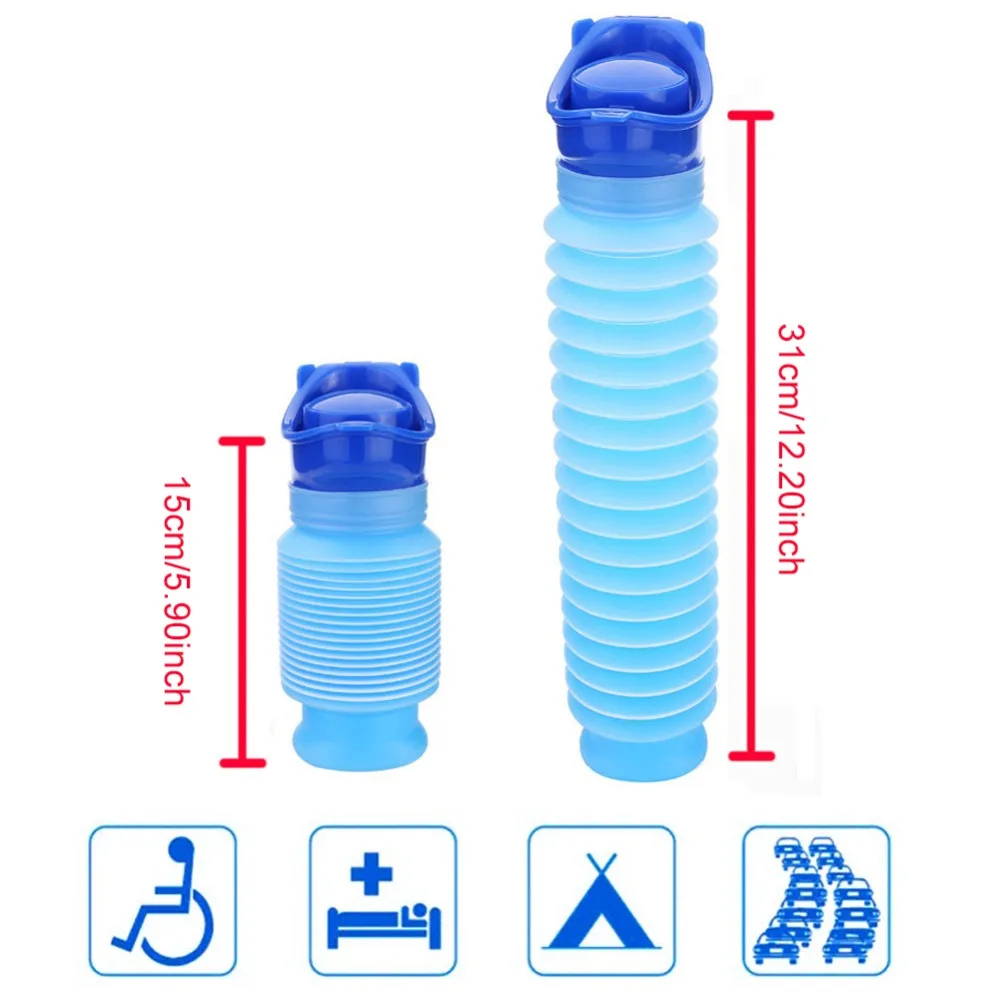 Эта писсуар бутылка являетсяИдеальный компактный аварийный ТуалетРазработанДляДорожные поездки, кемпинг, туризм, путешествия, пробкиИли любого неудобного случая.Расширяемая длина до 12 дюймовПри необходимости предоставитьЕмкость 750 мл.СдержанныйИ легко хранить после складывания.