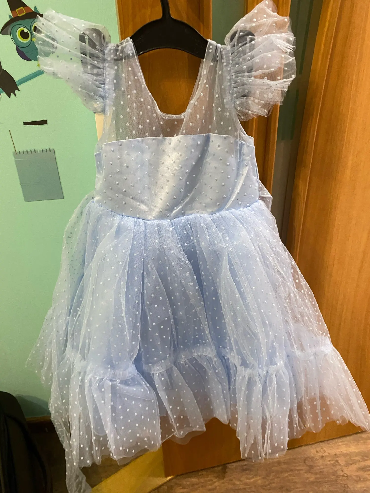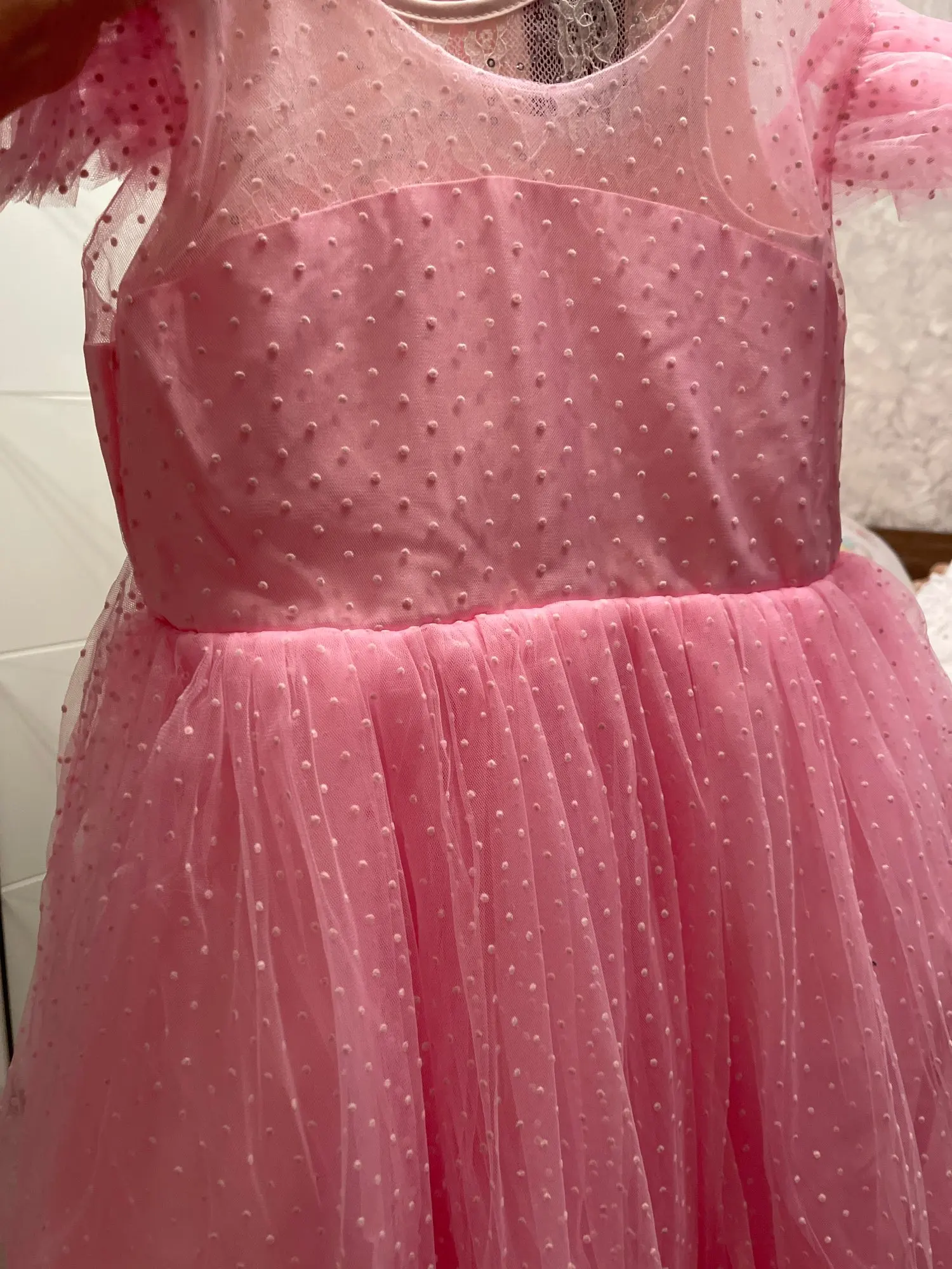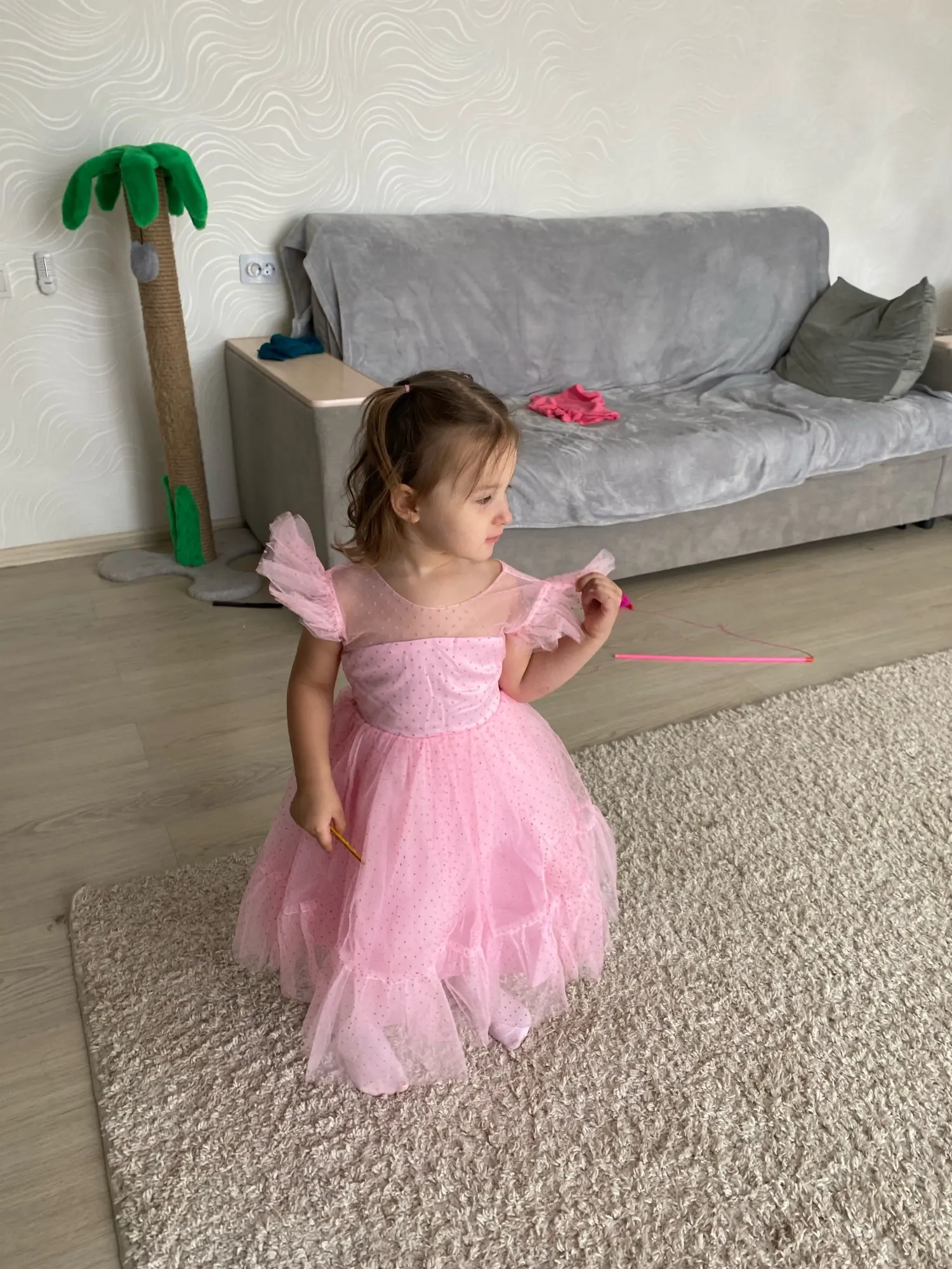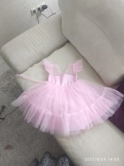 Красивое платье. Конечно не такое пышное как на фото, возможно нужен ещё отдельный подъюбник для пышности, но в целом нравится. По пошиву есть недочёты в виде петляющих строчек на подоле и торчащих ниток,но если не приглядываться, это не критично. Платье очень нежное, воздушное. Брала для ребёнка 2,3 года. Пока ещё не примеряли, но на вид подойдёт, с запасом на вырост, может будет чуть широковато, но благодаря поясочку можно будет это скорректировать. Доставка очень быстрая.