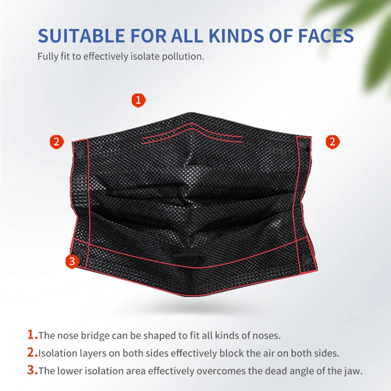 Одноразовая Нетканая черная маска 5001000 шт., 3-слойная Складная м...