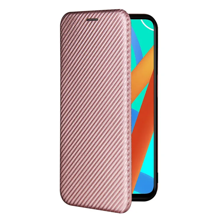 Чехол для Realme C21Y, кожаный чехол-книжка из углеродного волокна ...