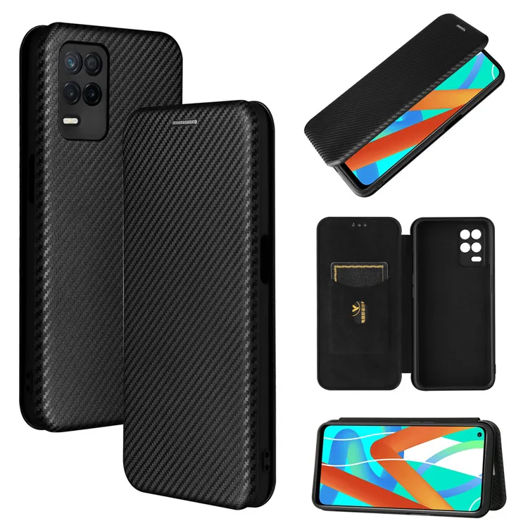 Для Realme Q3i 5G чехол из углеродного волокна Флип кожаный чехол для OPPO Realme Q3 Pro Q3 5G деловой Магнитный кошелек слот для карт тонкий Чехол