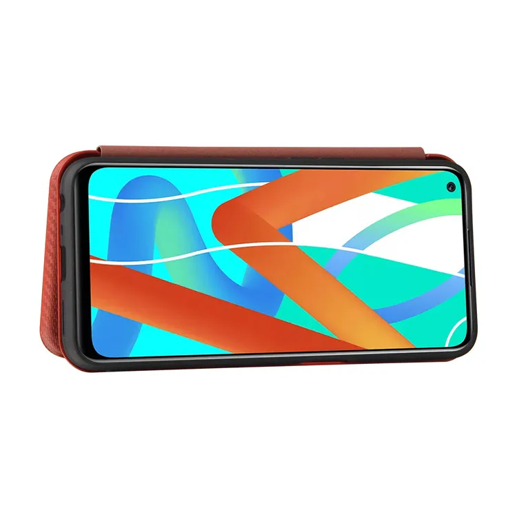 Чехол для Realme 8i, кожаный чехол-книжка из углеродного волокна дл...