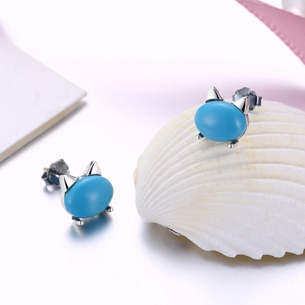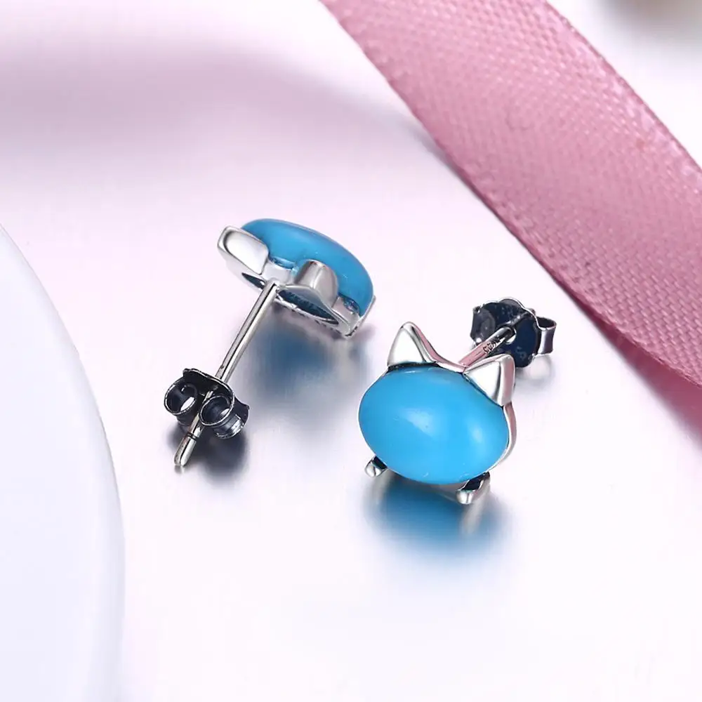 Серебряные серьги SILVERHOO, серебро 925 пробы, милая Бирюзовая фотография кошки для женщин, корейский ТВ звезда, элегантные ювелирные изделия, подарки
