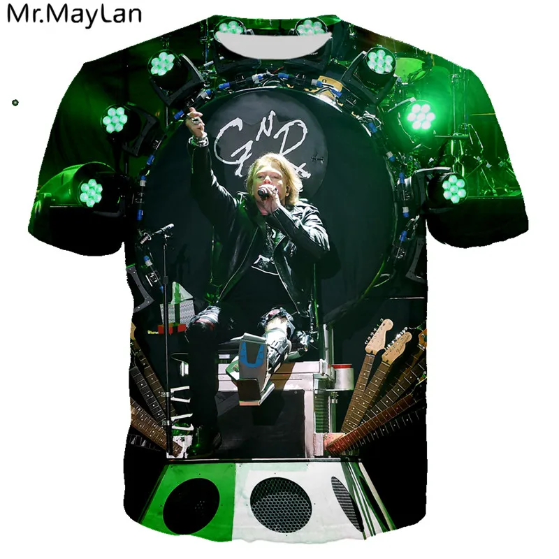 Футболка с 3D принтом Guns N' Roses Band, футболка с розами, хип-хоп-рок, уличная Летняя мужская одежда, Топ большого размера 5XL, 2021