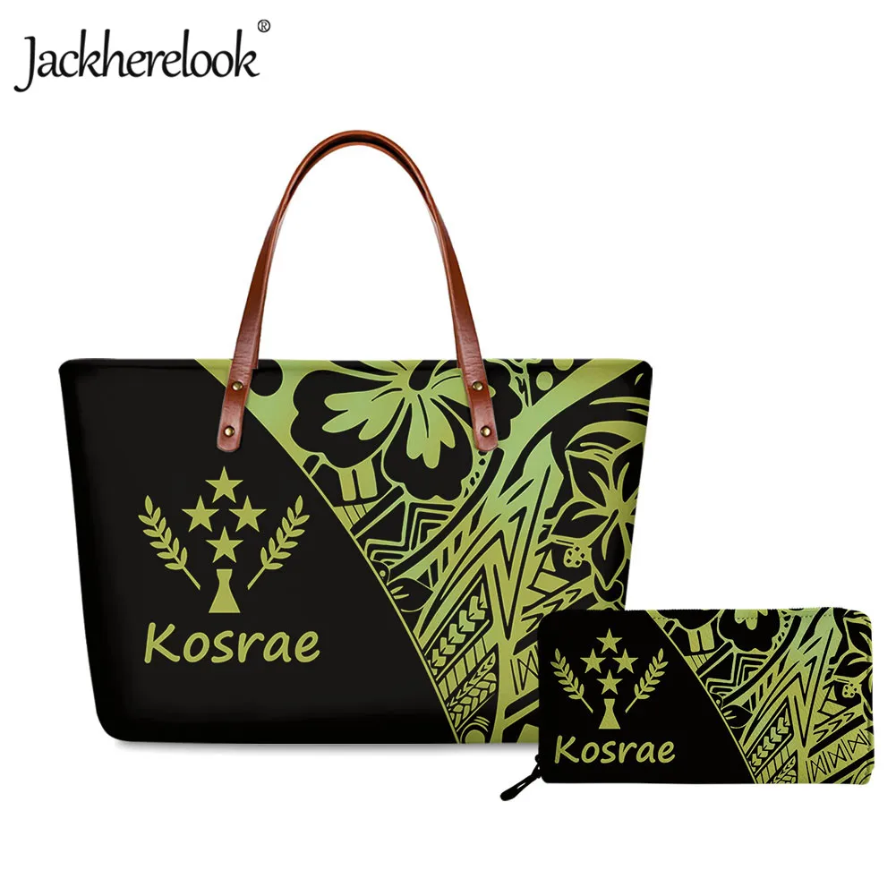 Jackherelook Kosrae полинезийский дизайн гибискуса женская сумочка клатч кошелек 2 шт.компл. Женская Повседневная Сумка-тоут через плечо и кошелек bolso