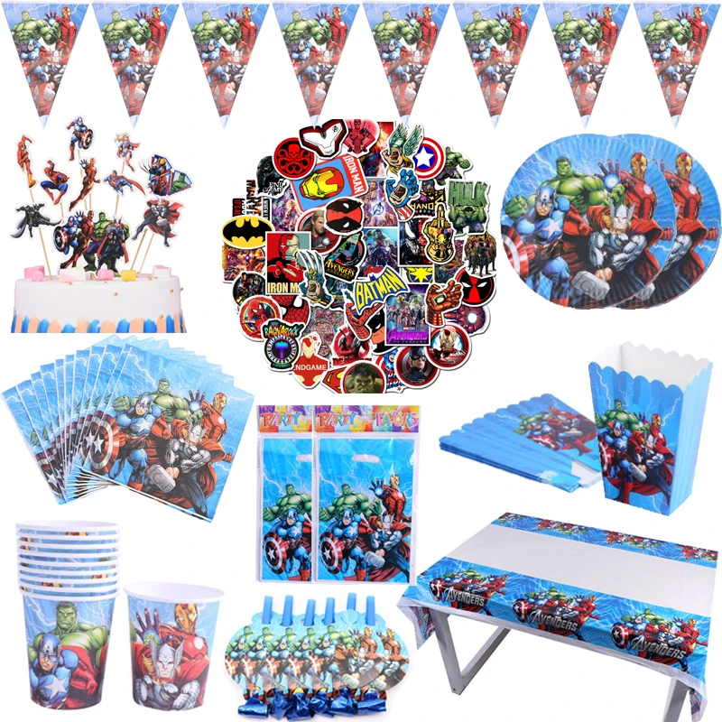 Мстители тема, детский душ вечерние украшения набор одноразовой посуды баннер Соломенная Сумка чашка тарелка скатерть принадлежности для детей
