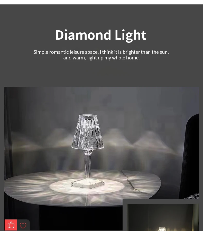USB Алмазная настольная лампа, акриловый декоративный светильник дл...