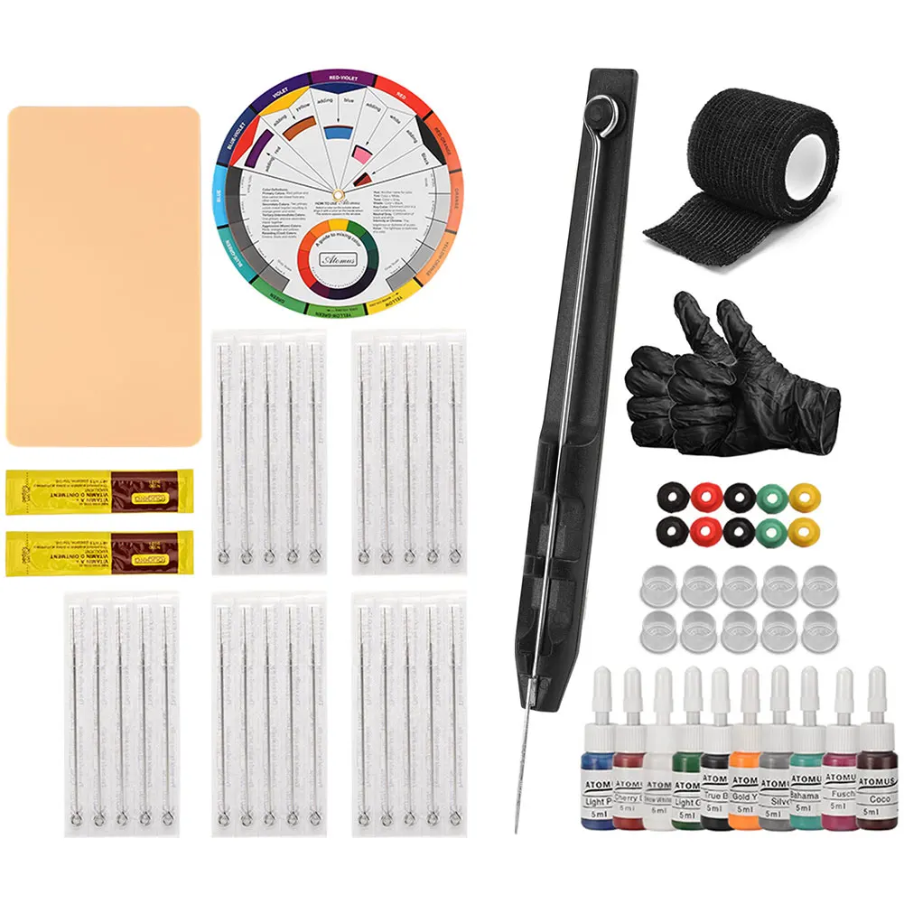 Набор для тату, набор игл для тату, ручная палка, принадлежности для татуировок, набор для тренировки кожи для начинающих, 1, 3, 5, 7, 9RL, игла для питания для художника