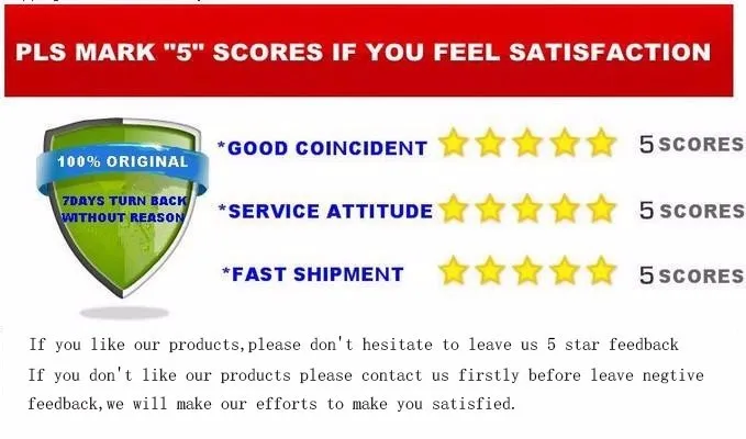 1. Пожалуйста, оставьте 5-звездочные отзывы, если вы удовлетворены нашей продукцией и обслуживанием, Мы будем признательны (товар, как описано 5 звезд, связь 5 звезд, время доставки 5 звезд).