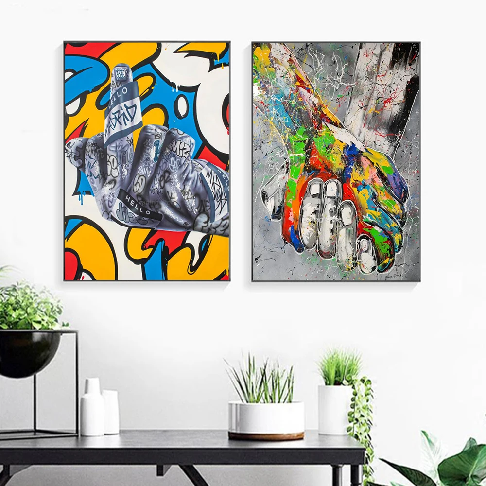 Цветная роспись Улица граффити стены искусства жесты плакаты современная спальня печать холст картина для гостиной коридор домашний декор