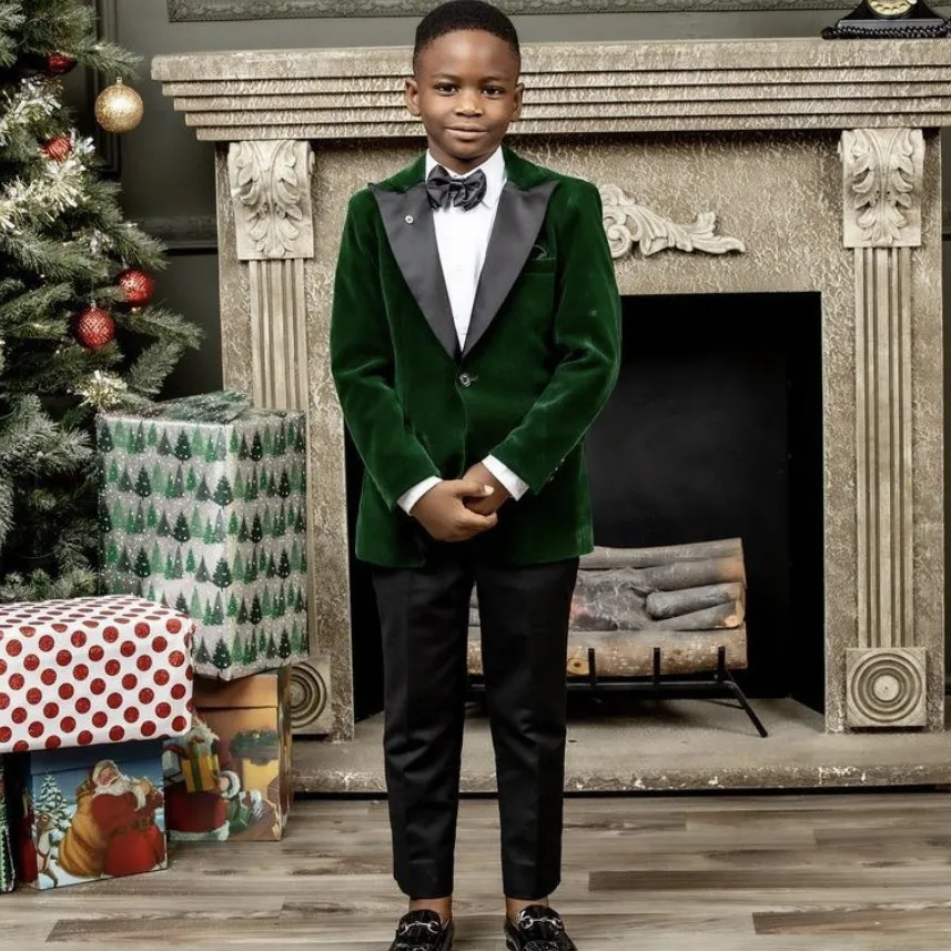 Зеленые бархатные костюмы для мальчиков на свадьбу Одежда для детей на день рождения вечерние Формальные костюмы комплекты одежды костюм для мальчика с кольцами, наряд (пиджак + брюки)