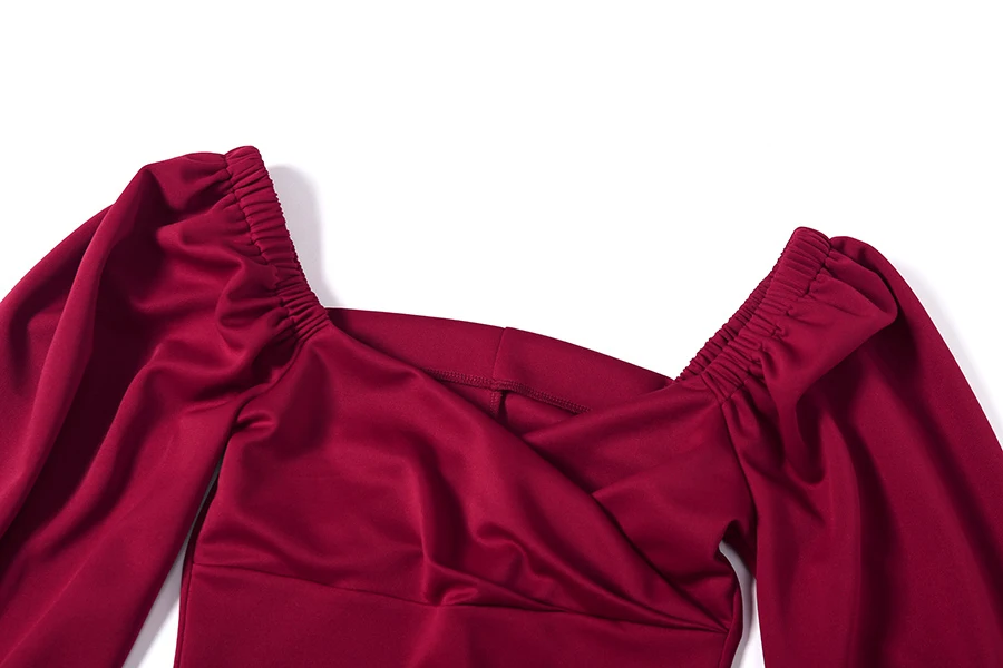 Женское соблазнительное облегающее платье, однотонное платье с V-образным вырезом, открытыми плечами и рукавами-фонариками, элегантное вечернее рождественское платье средней длины, черное платье для женщин