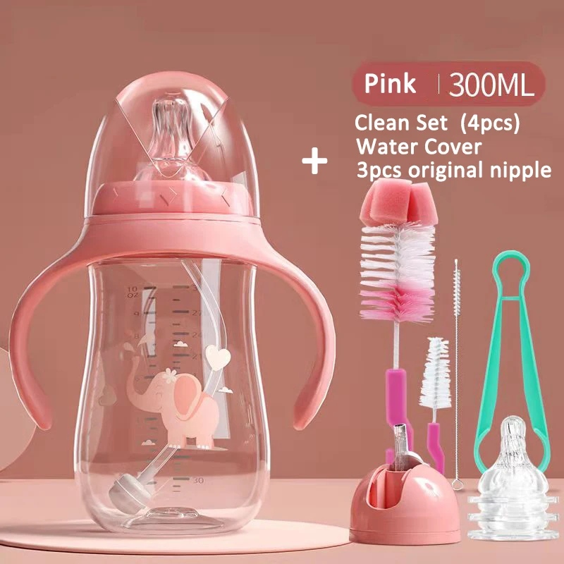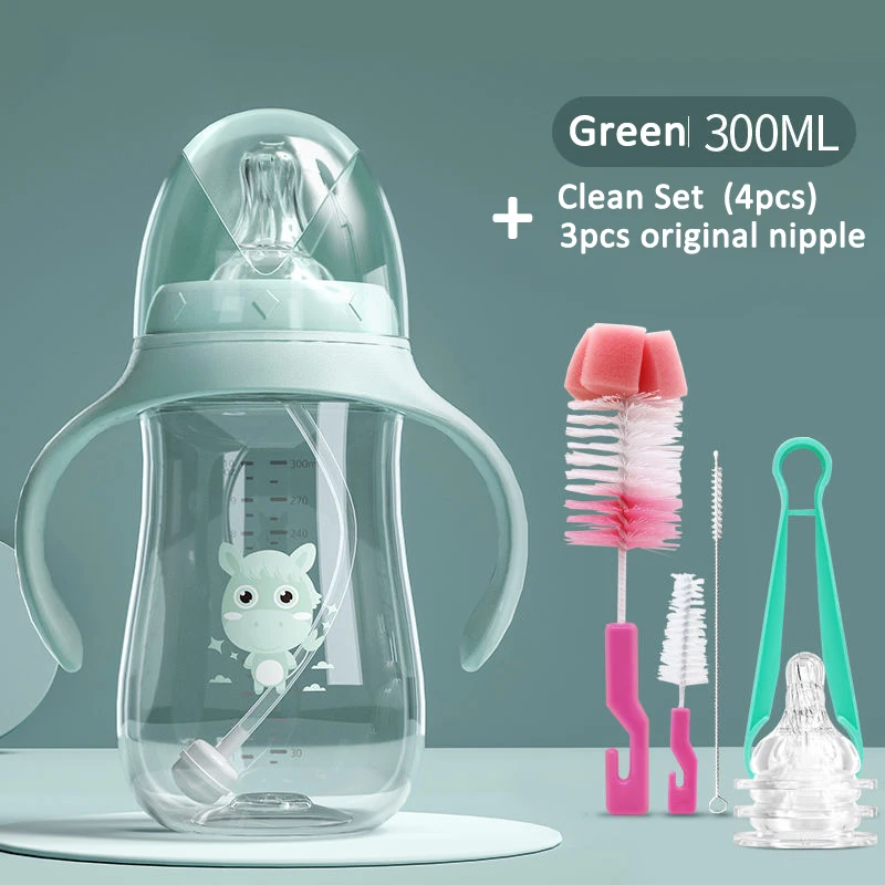 Набор бутылок для кормления детей, 180240300 мл, детские бутылочки из Силиконовой соломы, питьевая кружка двойного назначения