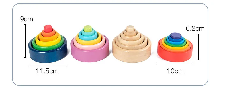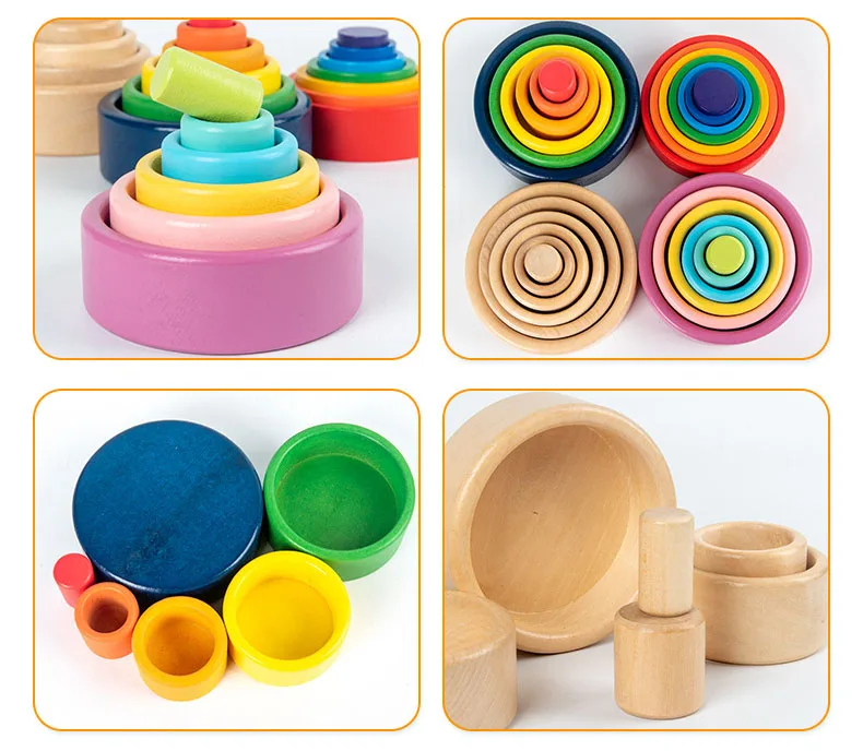 Детские деревянные игрушки, радужные гнездовые чашиЦветные некрашен...