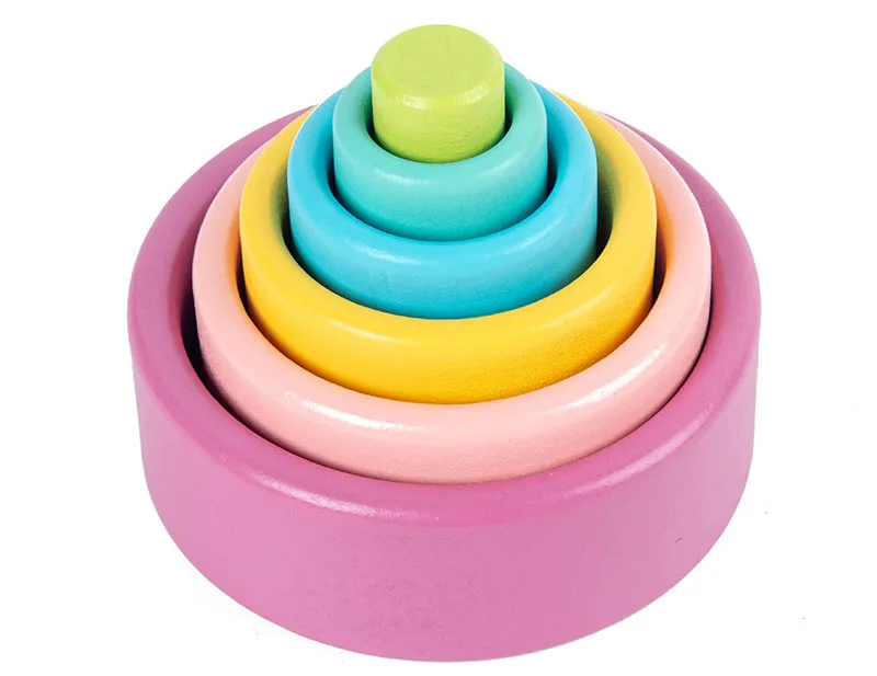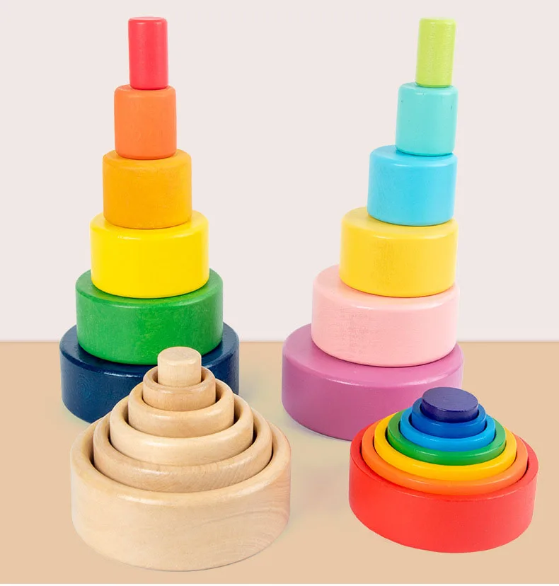 Деревянные радужные блоки, сложенные чашечки, конструктор, деревянн...