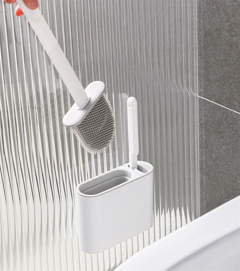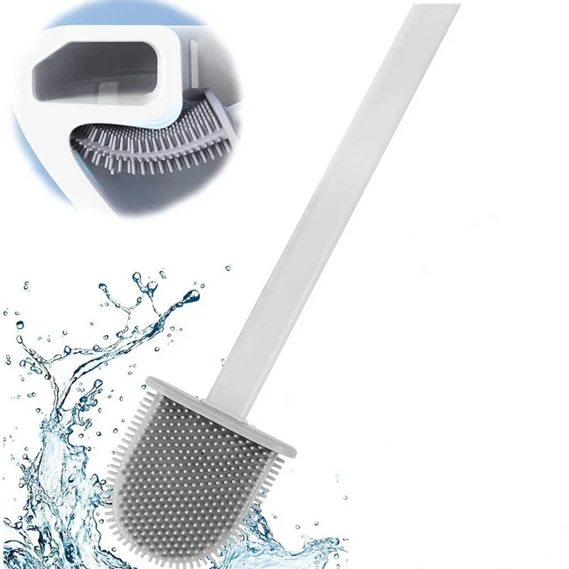Силиконовая щетка для унитаза с основанием для держателя, 2 щетки для чистки, настенная подвесная щетка для чистки туалета, длинная ручка, щетка из мягкой щетины для ванной комнаты