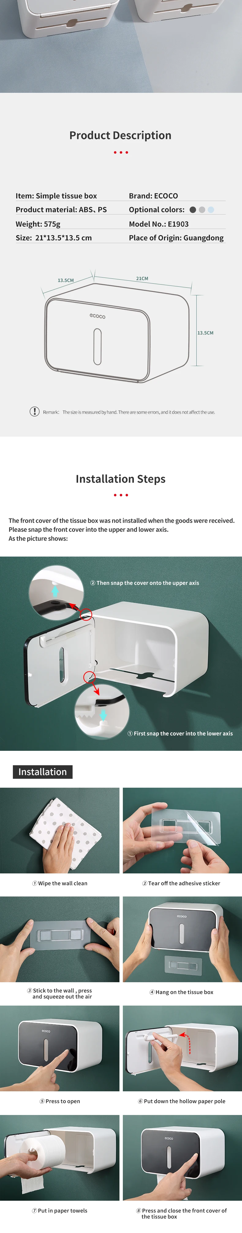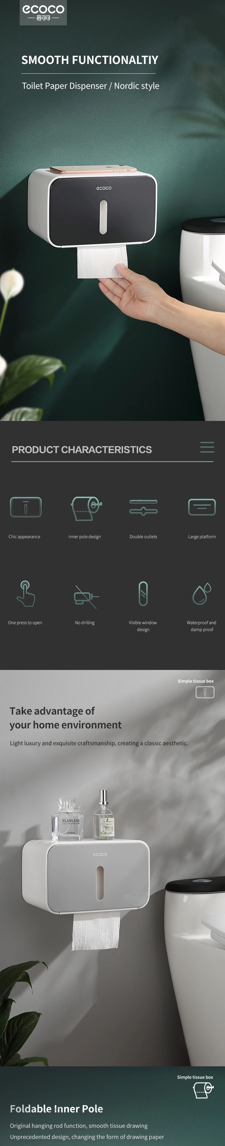 Водонепроницаемый бумажный ящик для полотенец ECOCO, настенный креативный простой дизайн, аксессуары для ванной комнаты, вешалка для размещения предметов