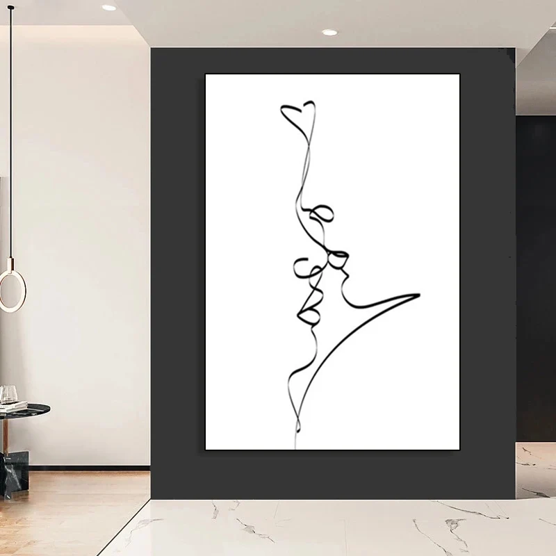 Абстрактная линия холст черно-белая стена искусство минимализм печа...