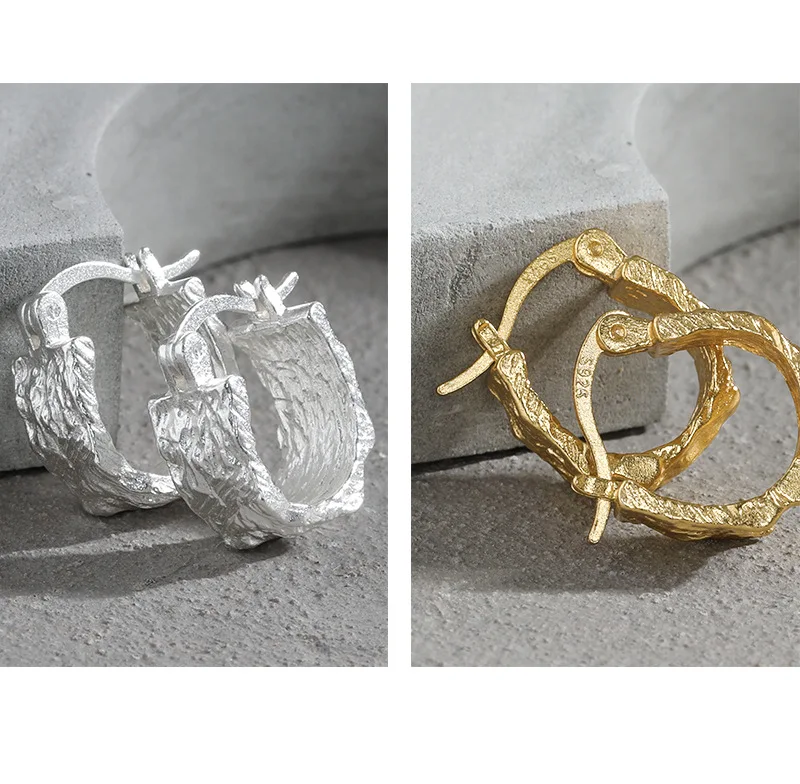 Серьги-кольца из серебра 925 пробы, с геометрической текстурой