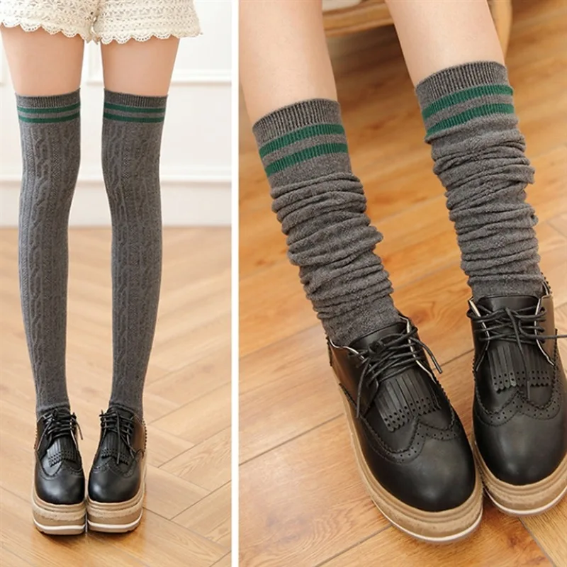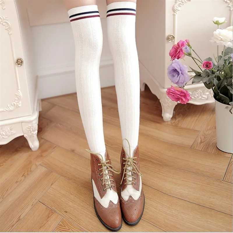Пикантные теплые длинные хлопковые чулки выше колена, женские зимние гольфы до бедра, вязаные чулки для дам, гольфы