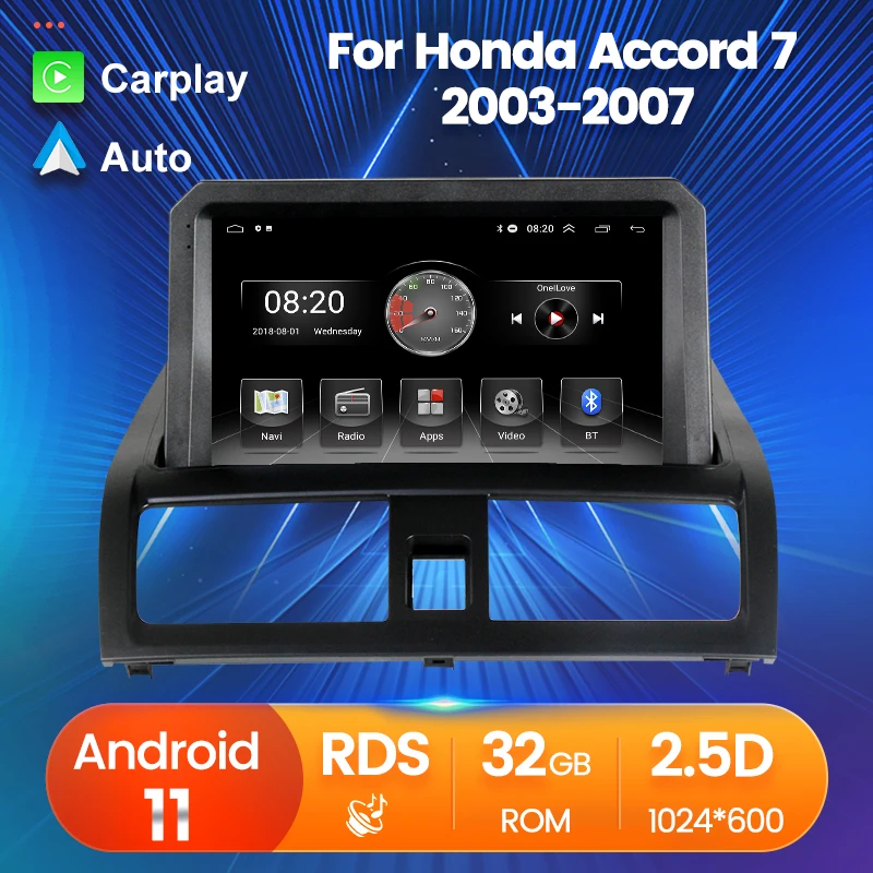 Автомобильный радиоприемник, стереоплеер 2din, мультимедиа, GPS-навигация для Honda Accord 7 2003-2007, Android 11 RDS 2.5D, сенсорный экран Carplay