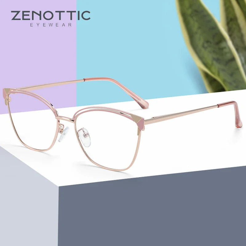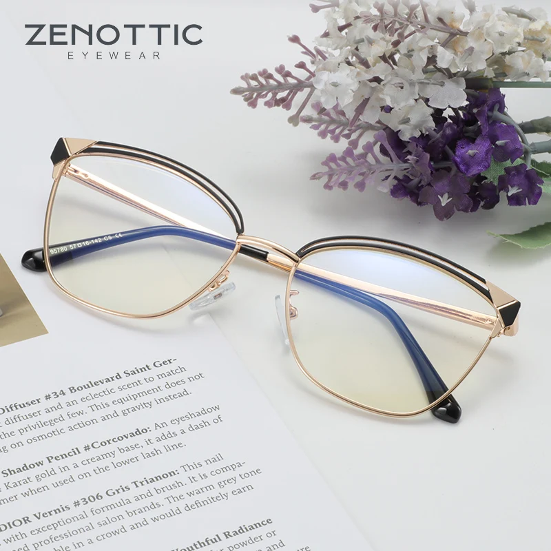 ZENOTTIC, модный, кошачий глаз, анти-синий светильник, очки для женщин, роскошный дизайн, металлические оптические очки, оправа, антибликовые компьютерные очки