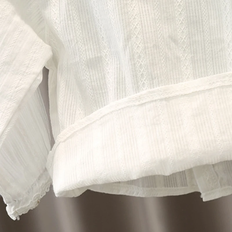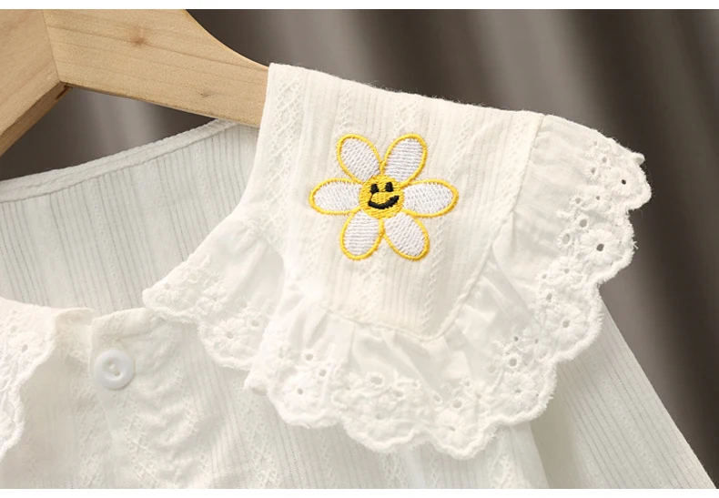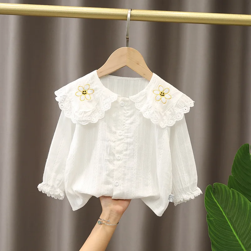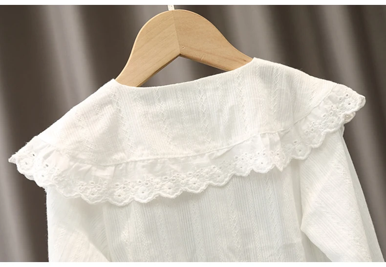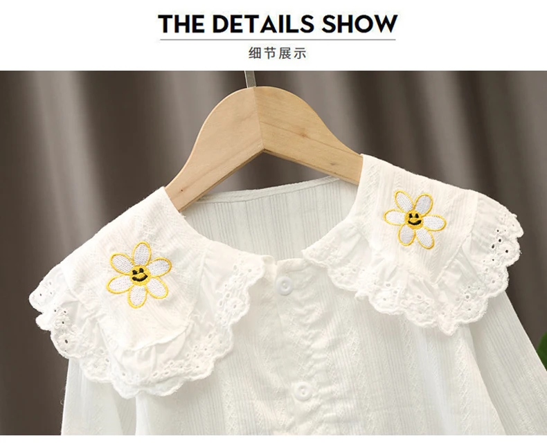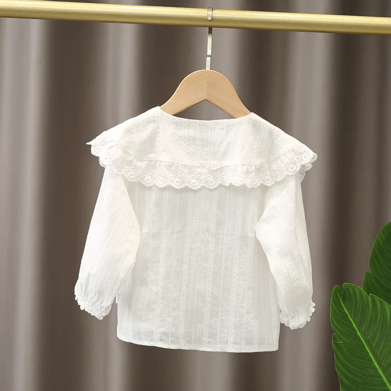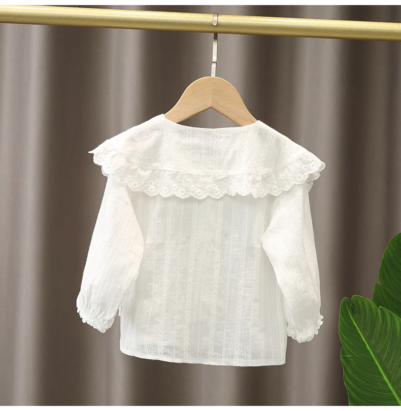 Детские весенние кружевные рубашки для девочек IENENS, блузки для девочек, однотонные топы, Женская хлопковая рубашка белого цвета