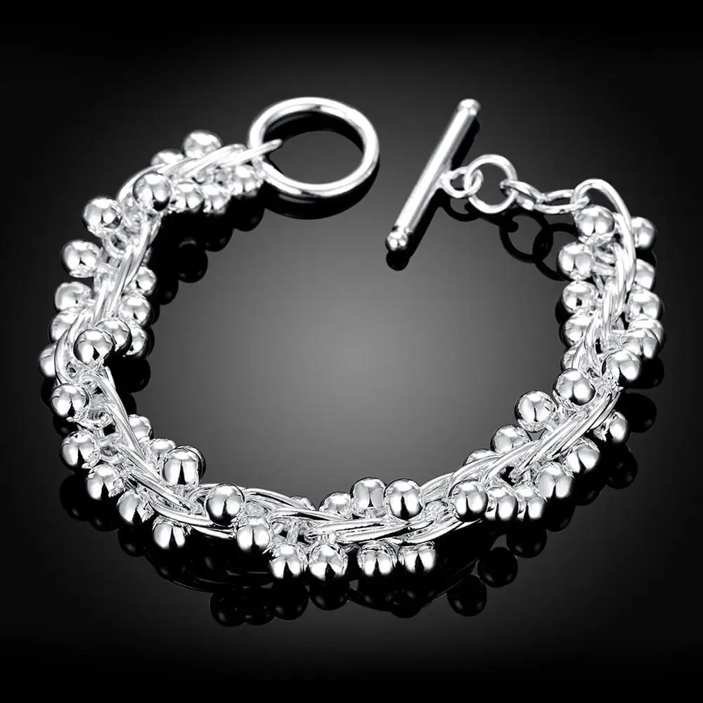 Женский гладкий браслет из серебра 925 пробы с бусинами винограда