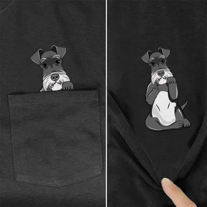 Хлопковая футболка CLOOCL с карманами, модная брендовая летняя футболка с принтом шнауцера, повседневные топы, хлопковые топы унисекс
