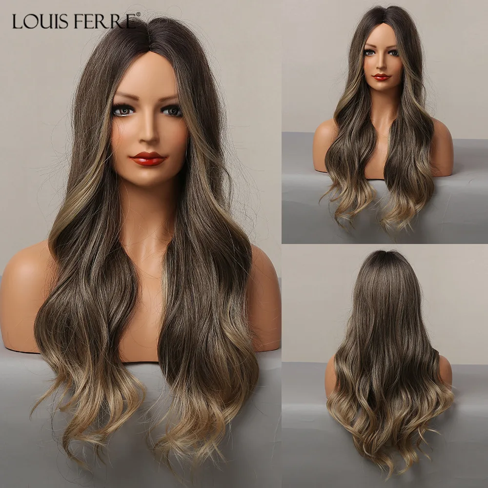 Синтетические длинные волнистые светлые пряди LOUIS FERRE для париков из коричневых волос для черных женщин, термостойкий парик средней длины на каждый деньвечерние
