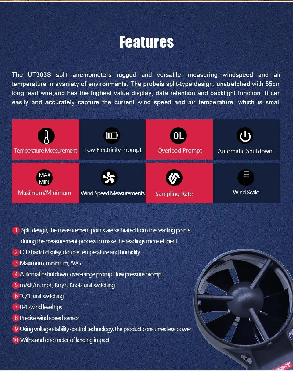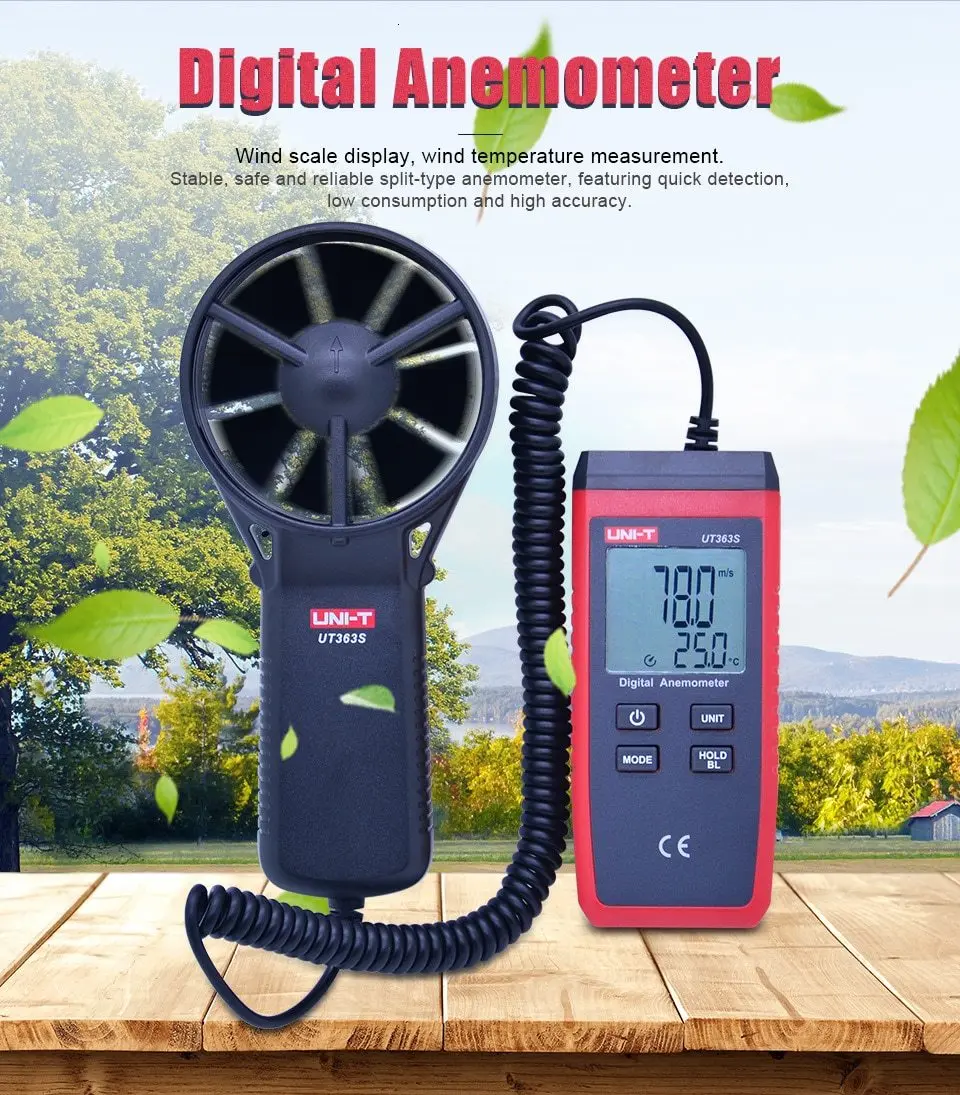 UNI-T UT363S Разделение Тип цифровой анемометр точный ветер Скорость Сенсор большой ЖК-дисплей Дисплей ветра весы Дисплей хранение данных