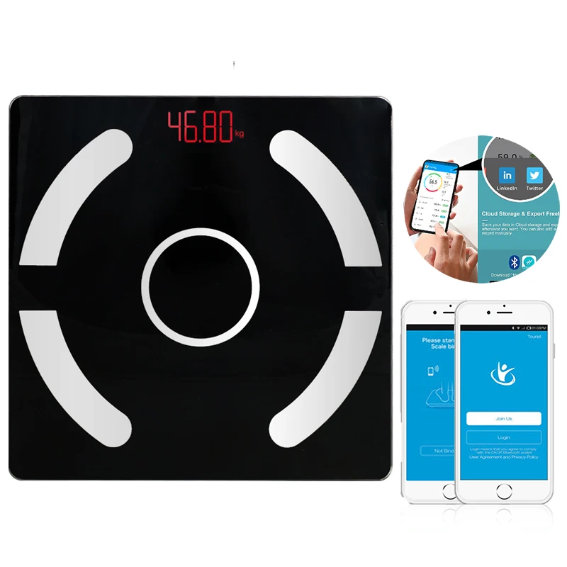 Умные блютуз весы для жира, закаленное стекло, цифровые электронные...