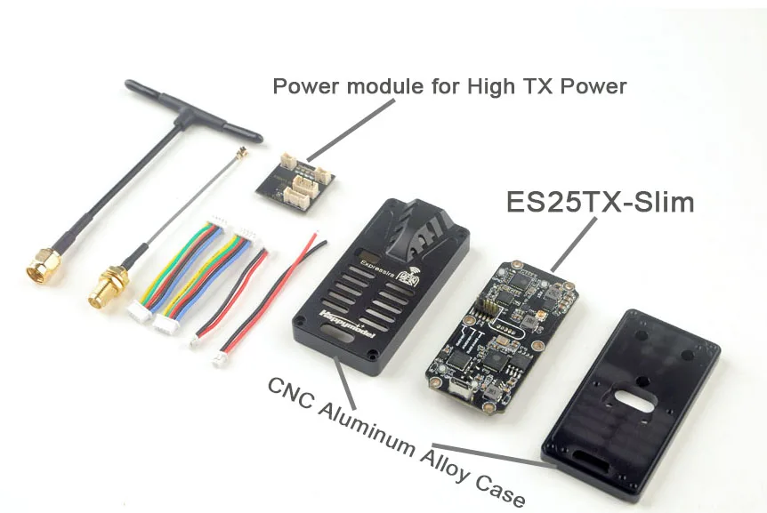 Конкретный Тонкий 2,4 GHz ExpressLRS TX модуль для Jumper T-lite выходит сейчас. Этот тонкий модуль TX разработан с помощью модели Happymodel и основан на радиочастотном модуле с открытым исходным кодом-ExpressLRS, который является очень популярной низкой задержкой и высокой частотой повторной вспышки радиочастотного модуля для радиоуправляемых самолетов и гонок FPV. Его основная аппаратная архитектура-ESP32, ESP8285 и SX1280 RF-чип. Модуль ES24TX -Slim-это полное решение, которое уже предварительно загрузило прошивку Expresslrs, и это подключи и работай для Jumper T-lite. Этот тонкий модуль TX поставляется с ЧПУ чехол из алюминиевого сплава, который может помочь модулю рассеивать тепло в условиях высокой мощности. Из-за дефекта источника питания T-lite с внешним высокомощным TX модулем, мы предоставляем модуль питания, чтобы гарантировать, что модуль TX может работать стабильно в условиях высокой мощности. Характеристики: Область регулирования: ISM2400 MCU:ESP32 (основной),ESP8285(aux, как espbackpack) Чип RF: SX1280IMLTRT JR Стандартный 5-контактный разъем Частотный диапазон: 2400 МГц до 2500 МГц Максимальная частота получения обновления: 500 Гц Минимальная частота обновления приемника: 25 Гц Выходная мощность RF: 10 дБм ~ 24 дБм Мощность питающее напряжение: 3v ~ 4,5 v Вес: 7,5 грамм (без антенны и чехол) Размер: 57 мм * 27 мм * 12 мм (без CNC чехол) Коэффициент усиления антенны: 1,87dbi Посылка включает: ES24TX-Slim * 1 T_Lite EXTCONV силовой модуль * 1 24TX80 антенна * 1 Чехол из алюминиевого сплава с ЧПУ * 1 Кабель адаптера антенны * 1 Соединительный провод * 1 комплект Так как официальная ExpressLRS perfect программа еще не была выпущена, наша Предустановленная программа является бета-версией, потому что существует слишком много типов бета-версий программ, таким образом, вы можете скачать прошивку с завода с нашего сайта. Существует два вида из заводской прошивки ES24TX-Slim, один из которых соответствует Happymodel PP RX receiver (идентификационный код версии программы6cb8152d) И другая модель соответствует приемникам Happymodel EP1 и EP2 RX (идентификационный код версии программыAec8ad82), Заводская прошивка по умолчанию aec8ad82, которая соответствует EP1 и EP2 RX Вы можете загрузить прошивку с нашего веб-сайта, а затем обновить прошивку через подключение Wi-Fi горячей точки ES24TX, посетите «10.0.0.1» браузер (пароль:Expresslrs)