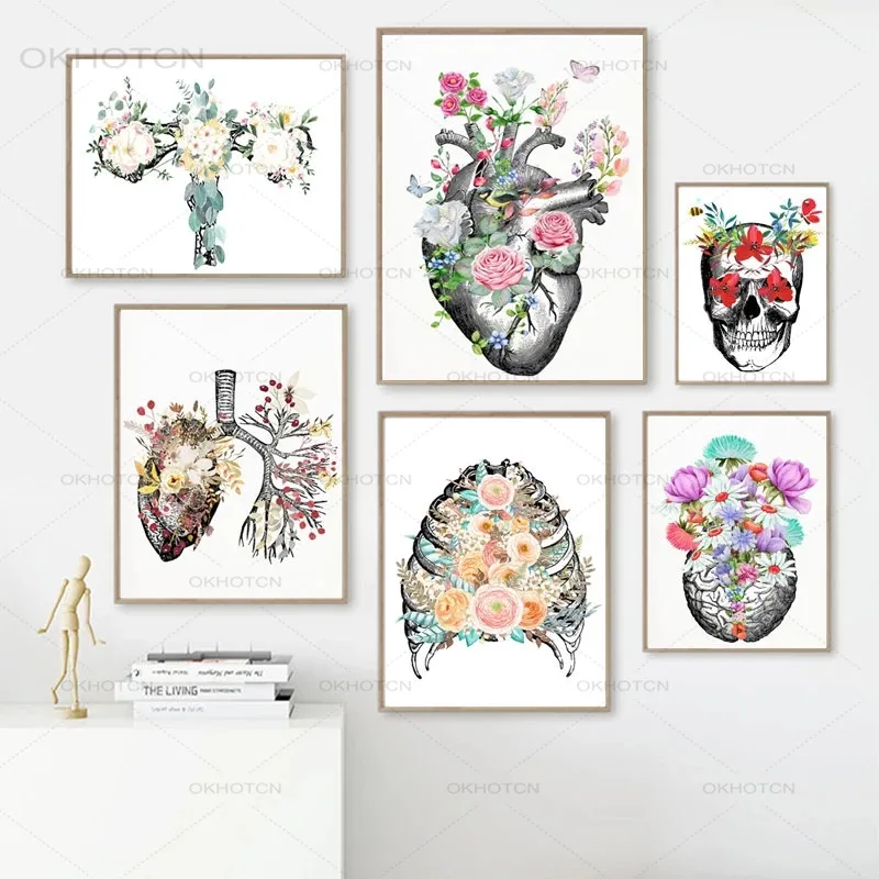 Анатомия цветок органов Картины Nordic Плакаты и принты Anthropologie Wall Art Холст Картина врачи Комнаты Настенный декор картины