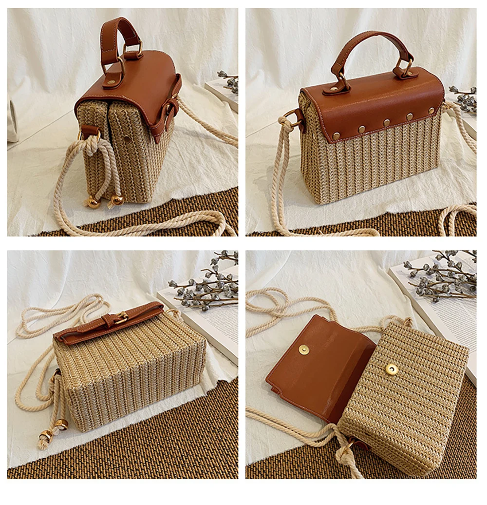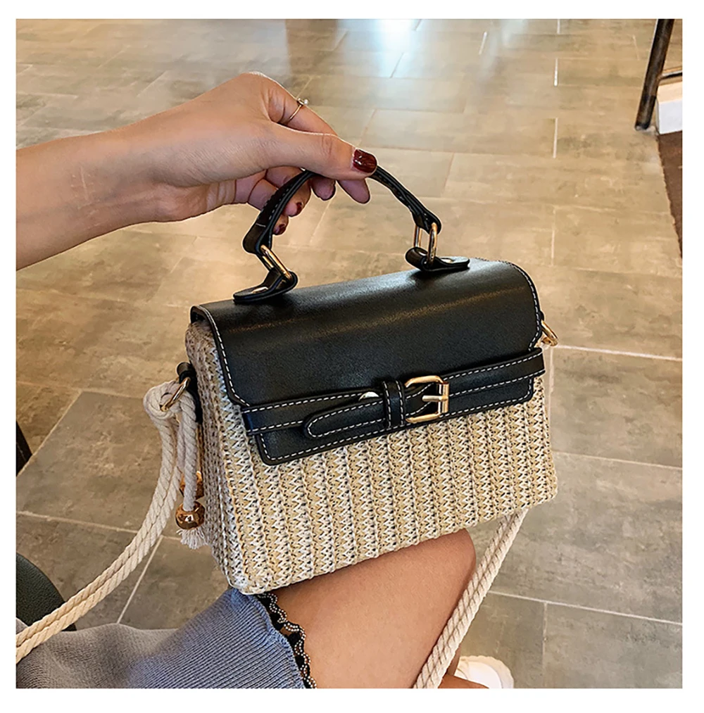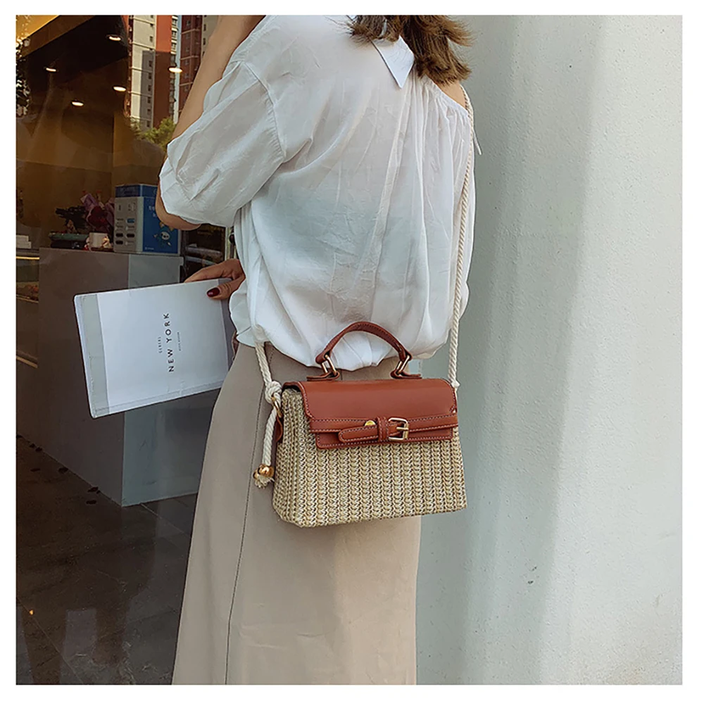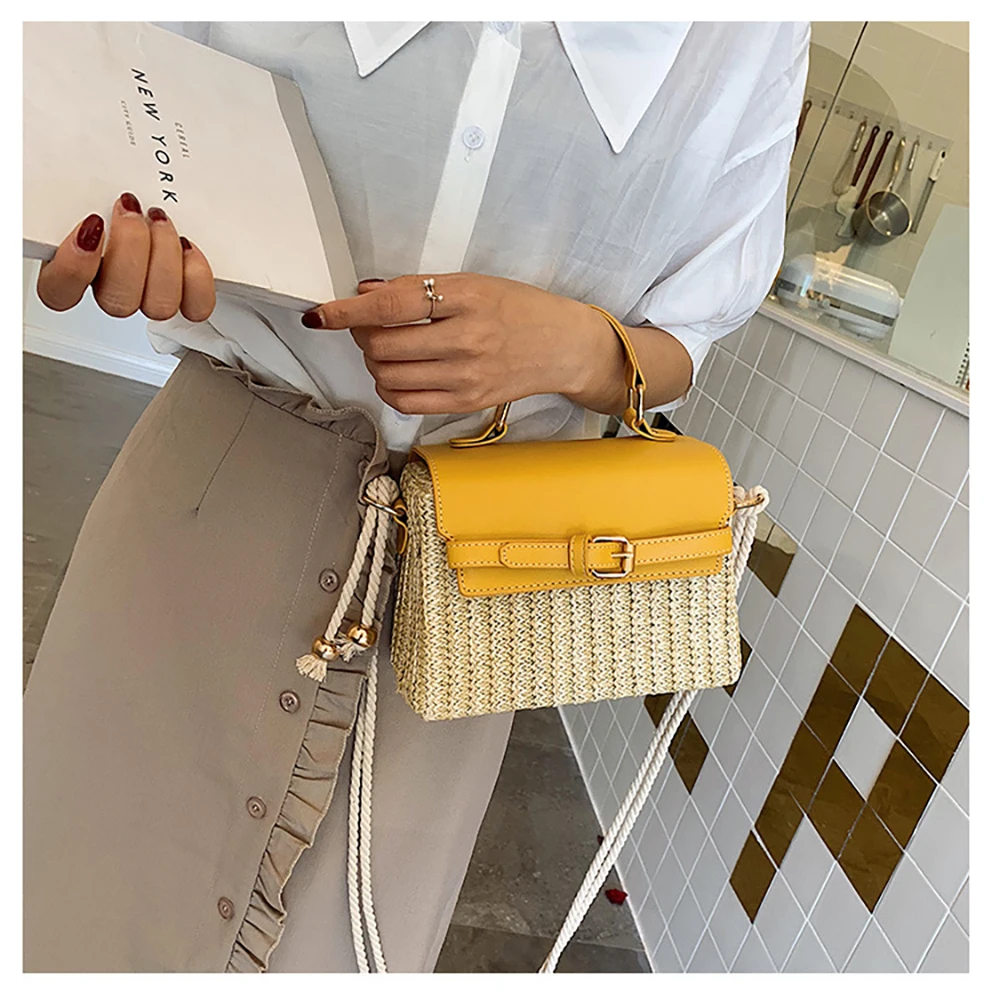 Новая стильная женская Повседневная Соломенная квадратная сумка, модная летняя сумка из ротанга ML113