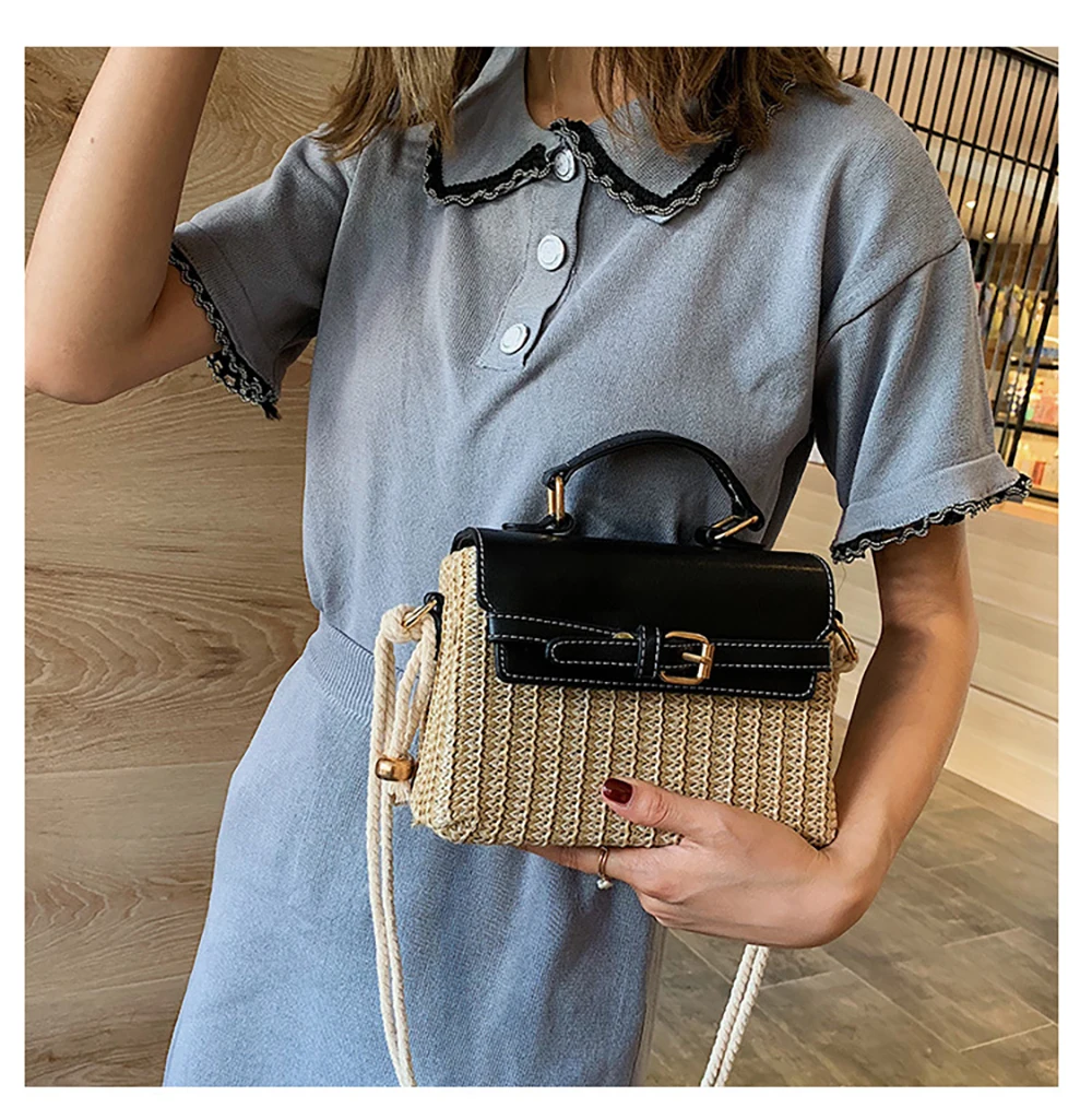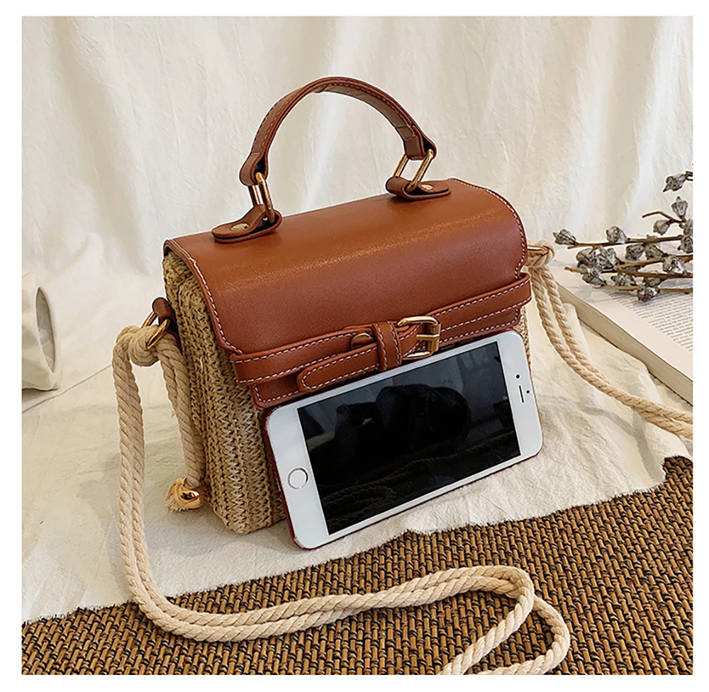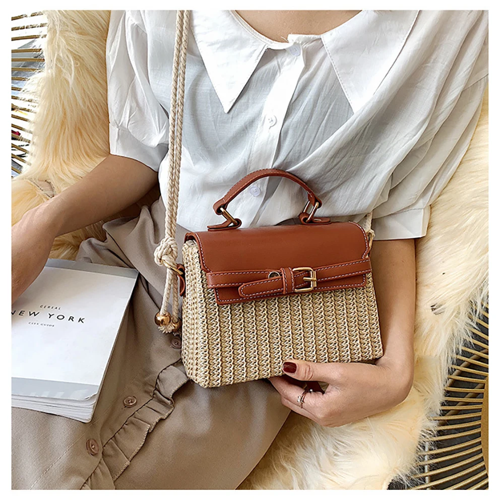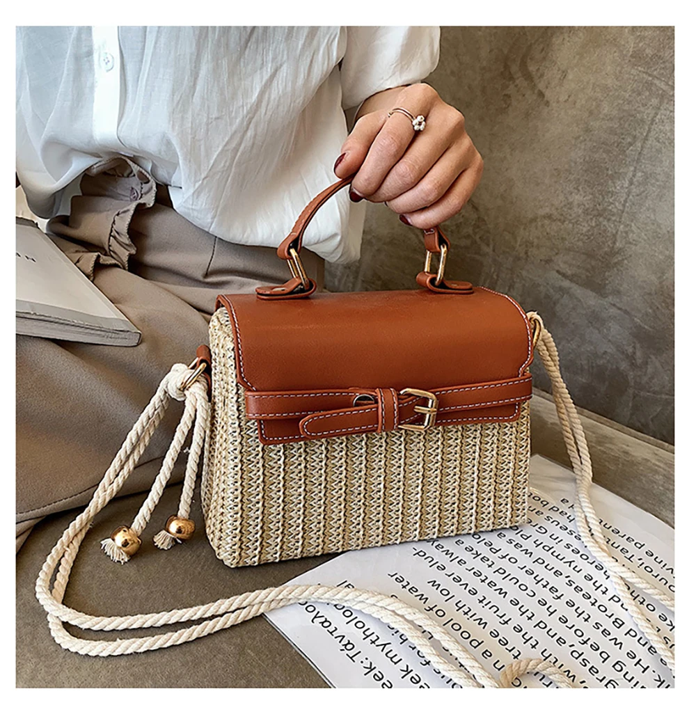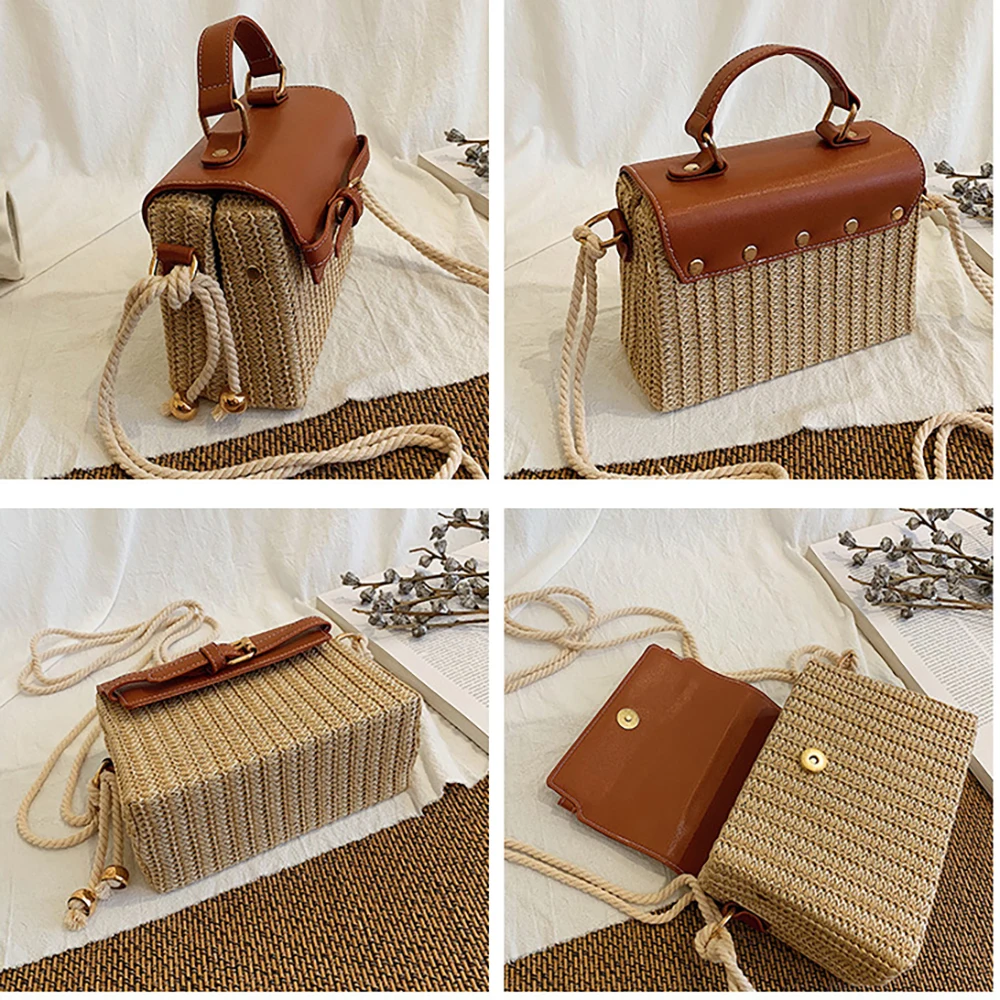 Новая стильная женская Повседневная Соломенная квадратная сумка, модная летняя сумка из ротанга ML113